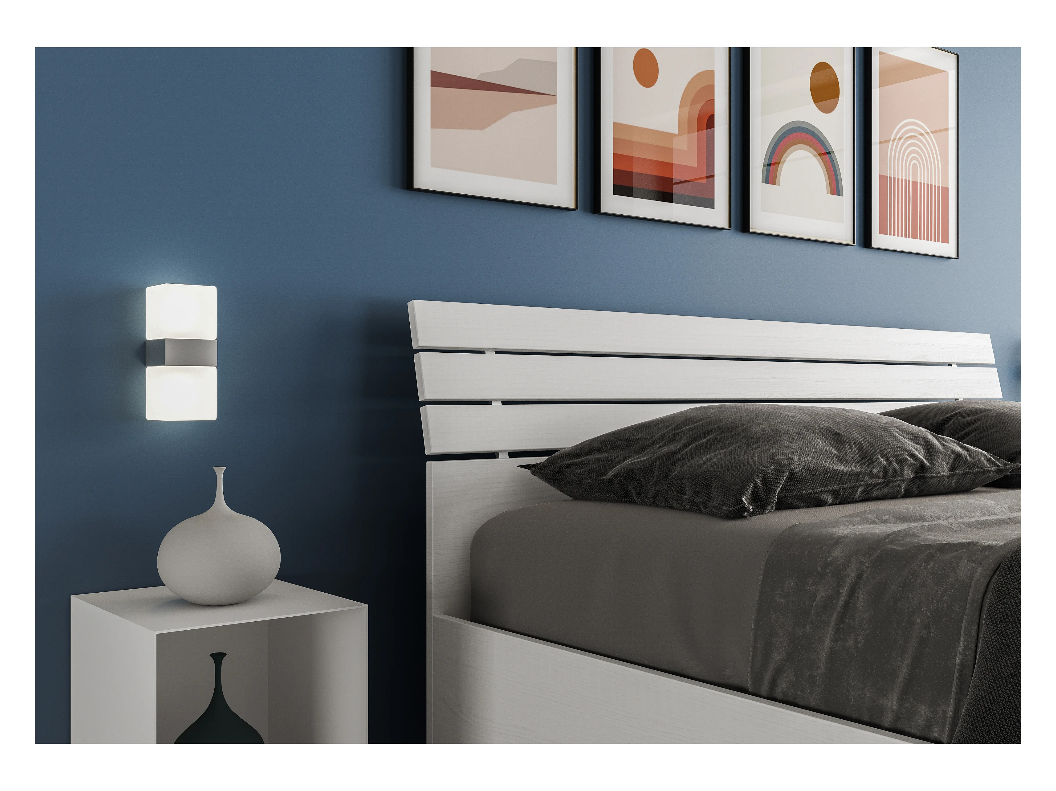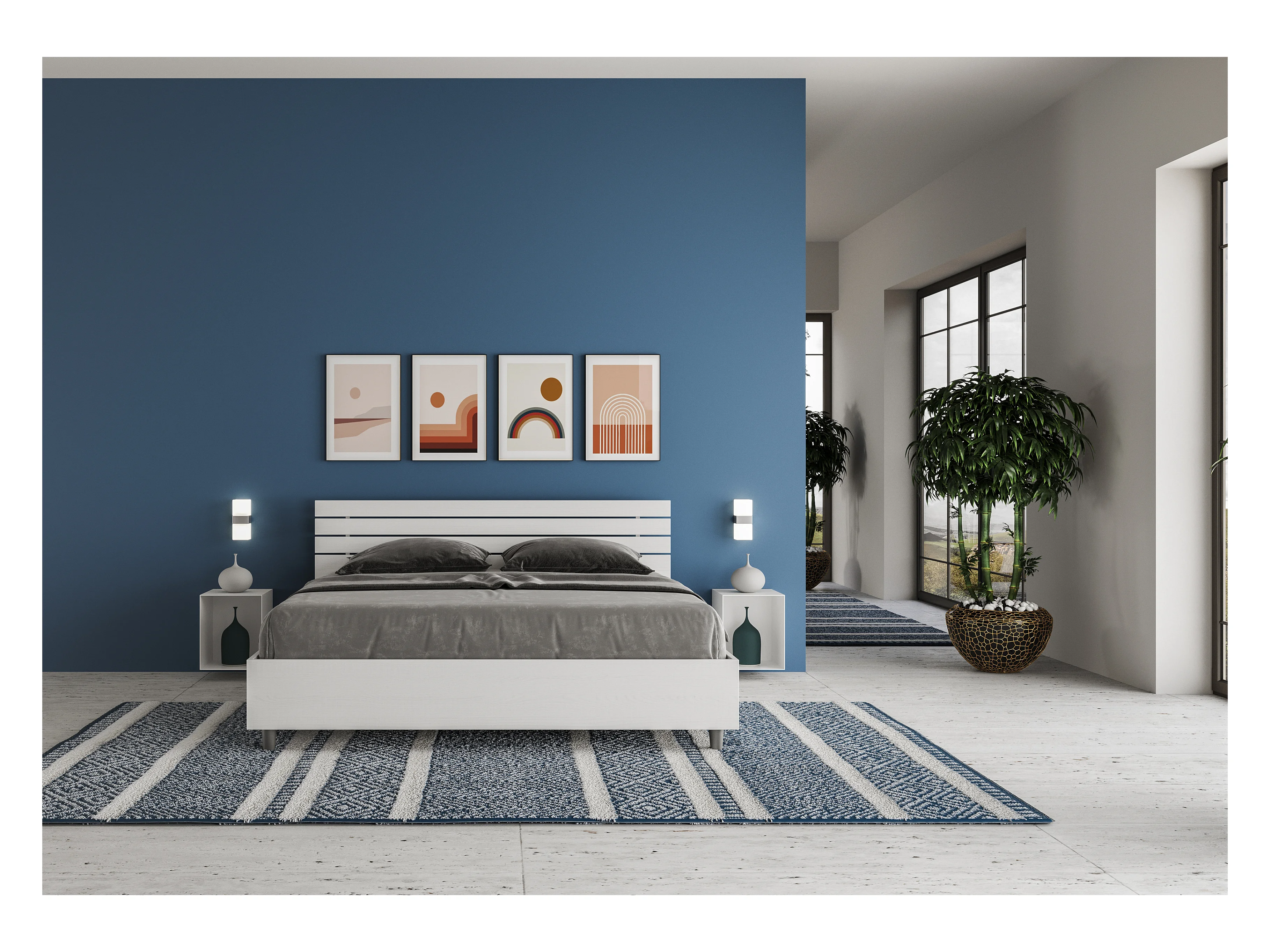 Bettkasten 160x190 mit geneigtem Kopfteil und Ankel-Latten aus weißer Esche