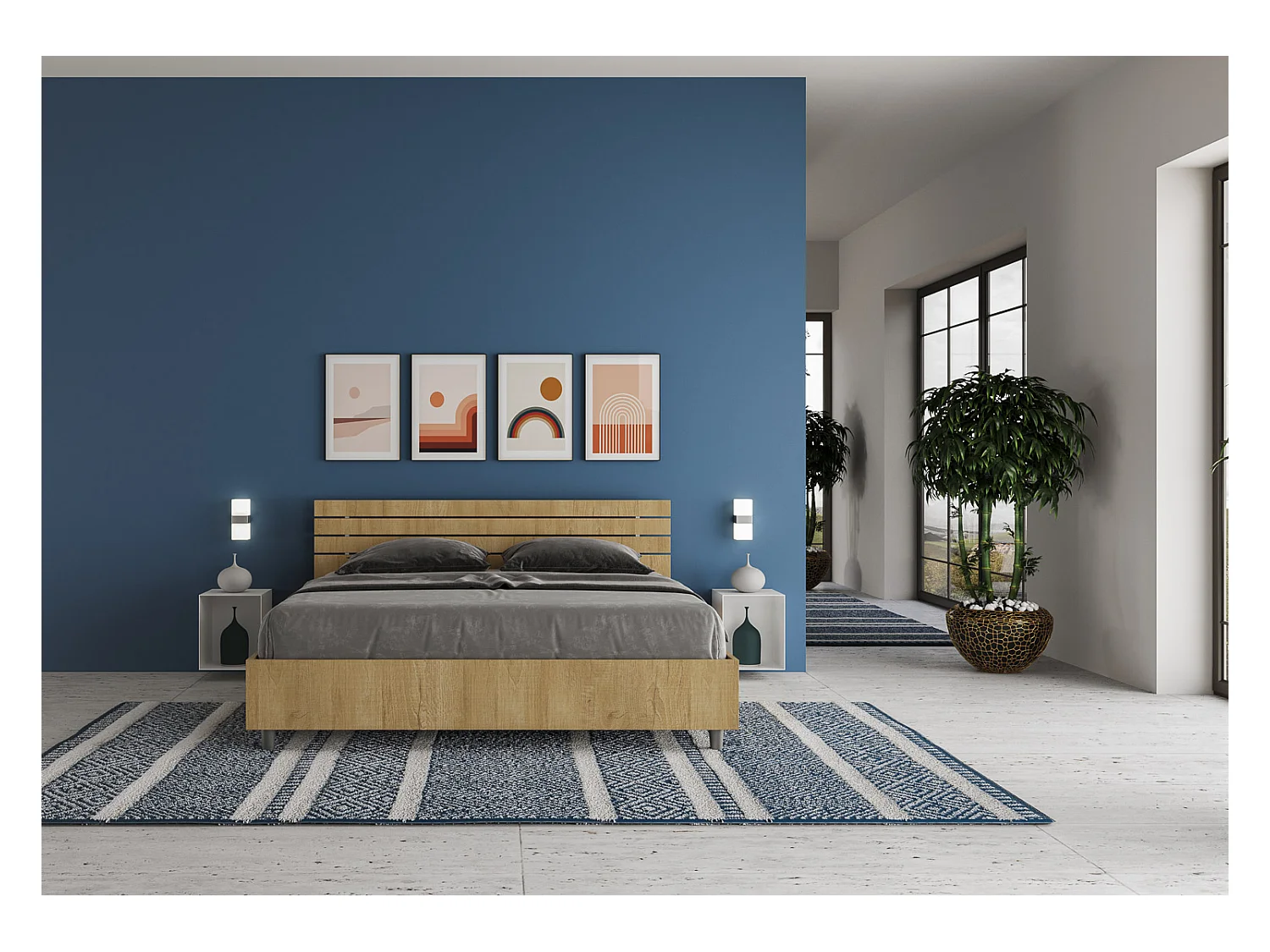 Bettkasten 160x200 mit geneigtem Kopfteil und Lattenrost aus Ankel-Eiche