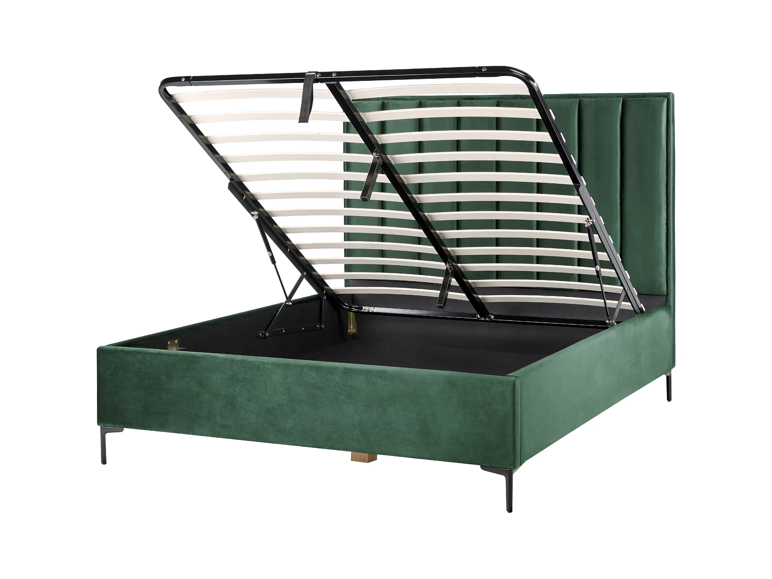 Bett mit Stauraum Samtstoff SEZANNE 160 x 200 cm Dunkelgrün