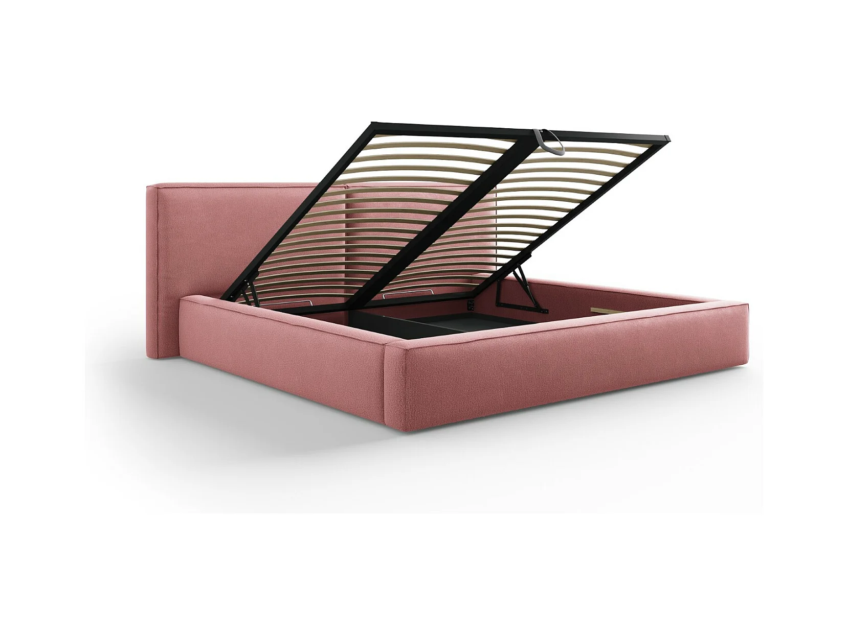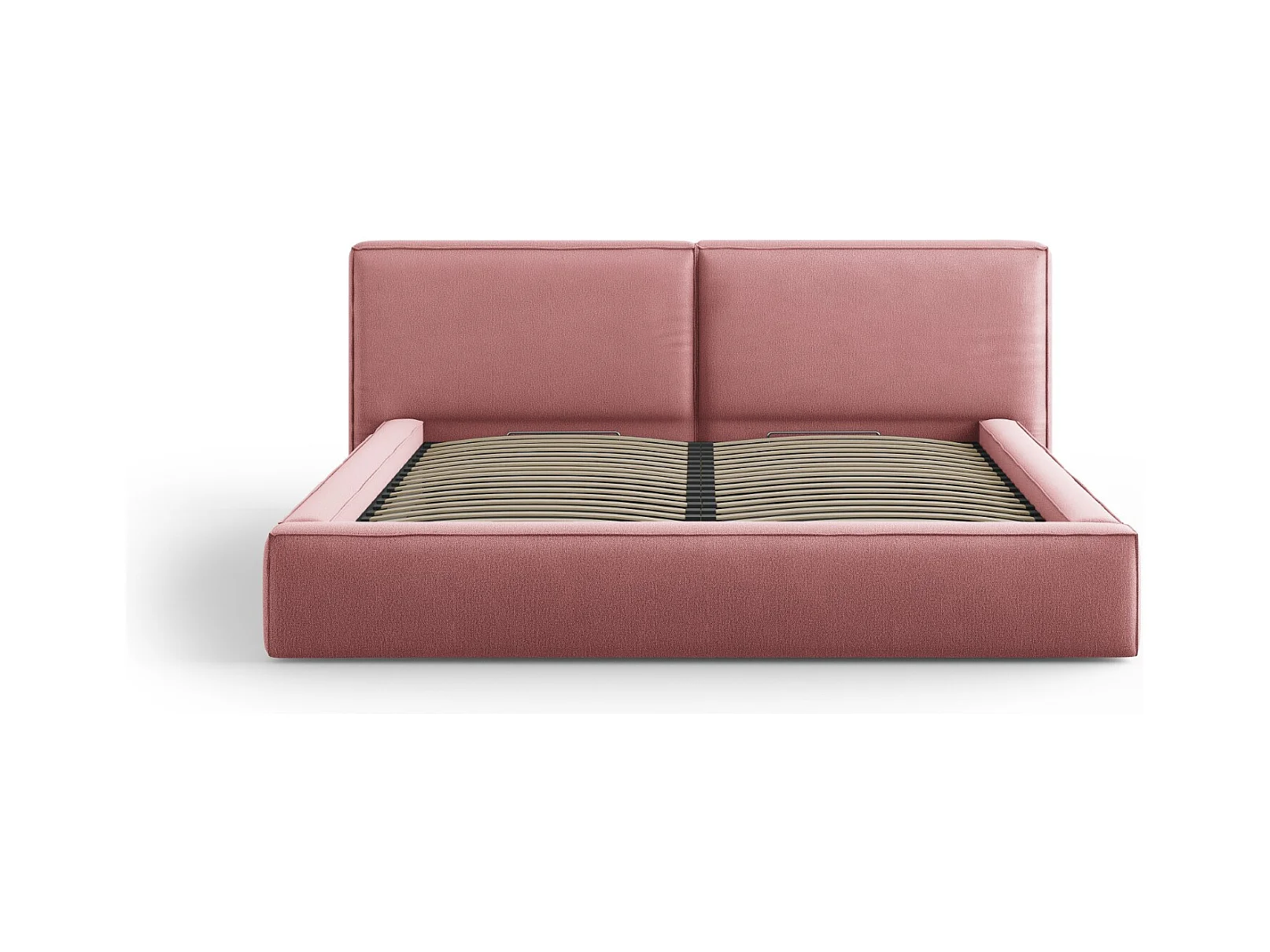 Cosmopolitan Design - Bett mit Bettkasten und Doppelkopfteil "Arendal" 200x200cm aus strukturiertem Stoff rosa - 228x254x97.5cm