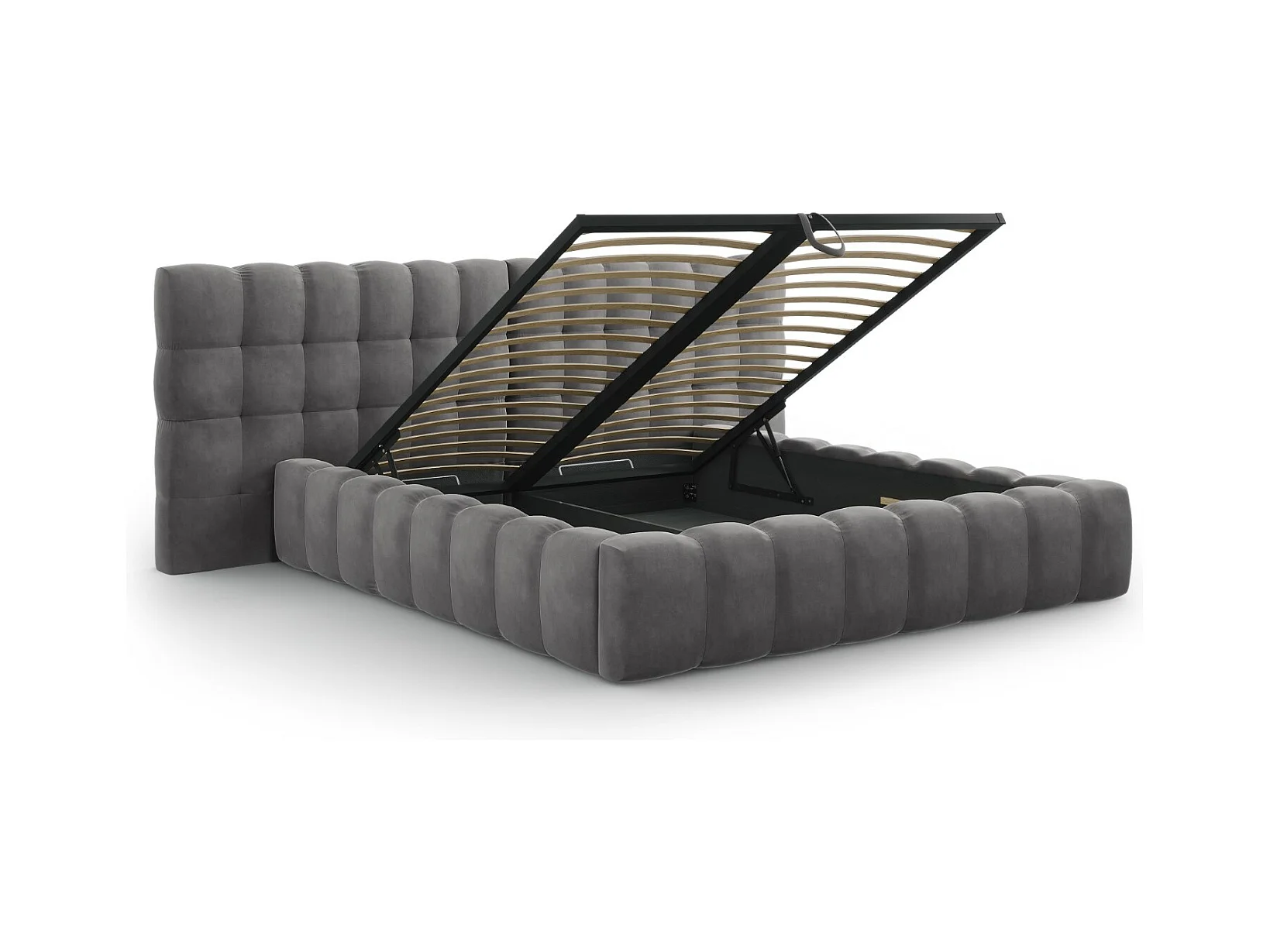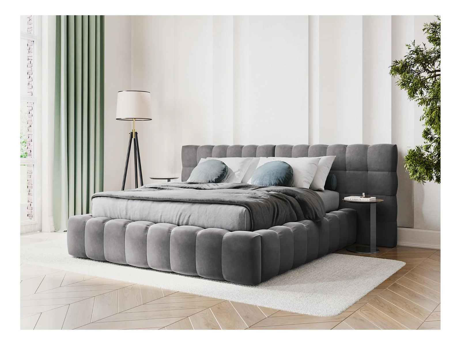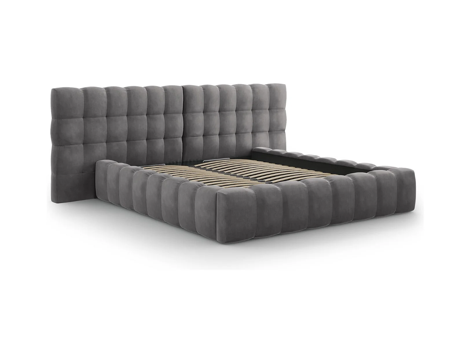 Cosmopolitan Design - Bett mit Bettkasten und Doppelkopfteil "Bali" 180x200cm aus Samt grau - 230x300x100cm