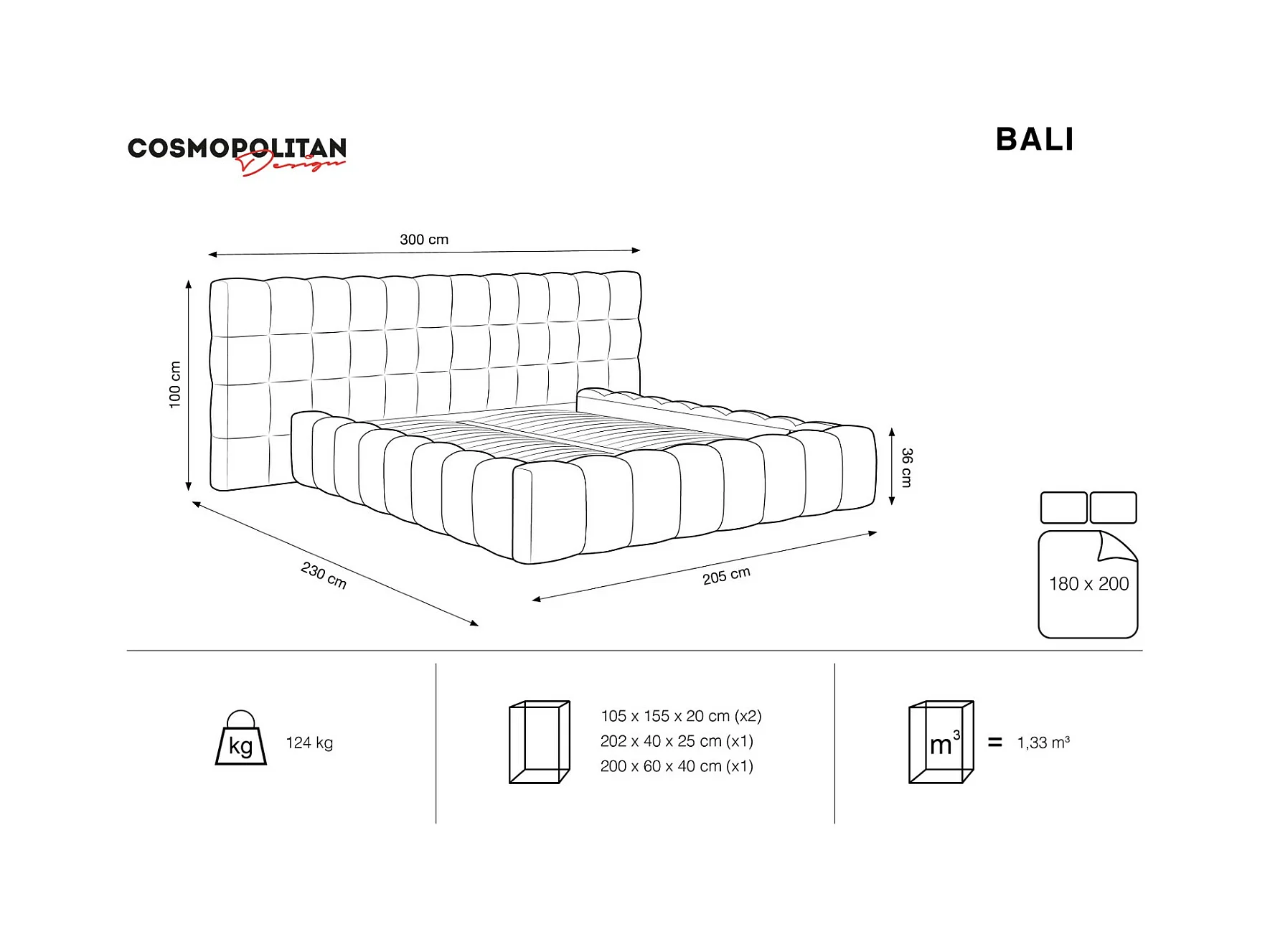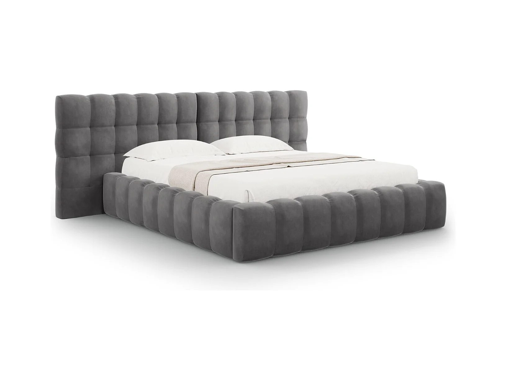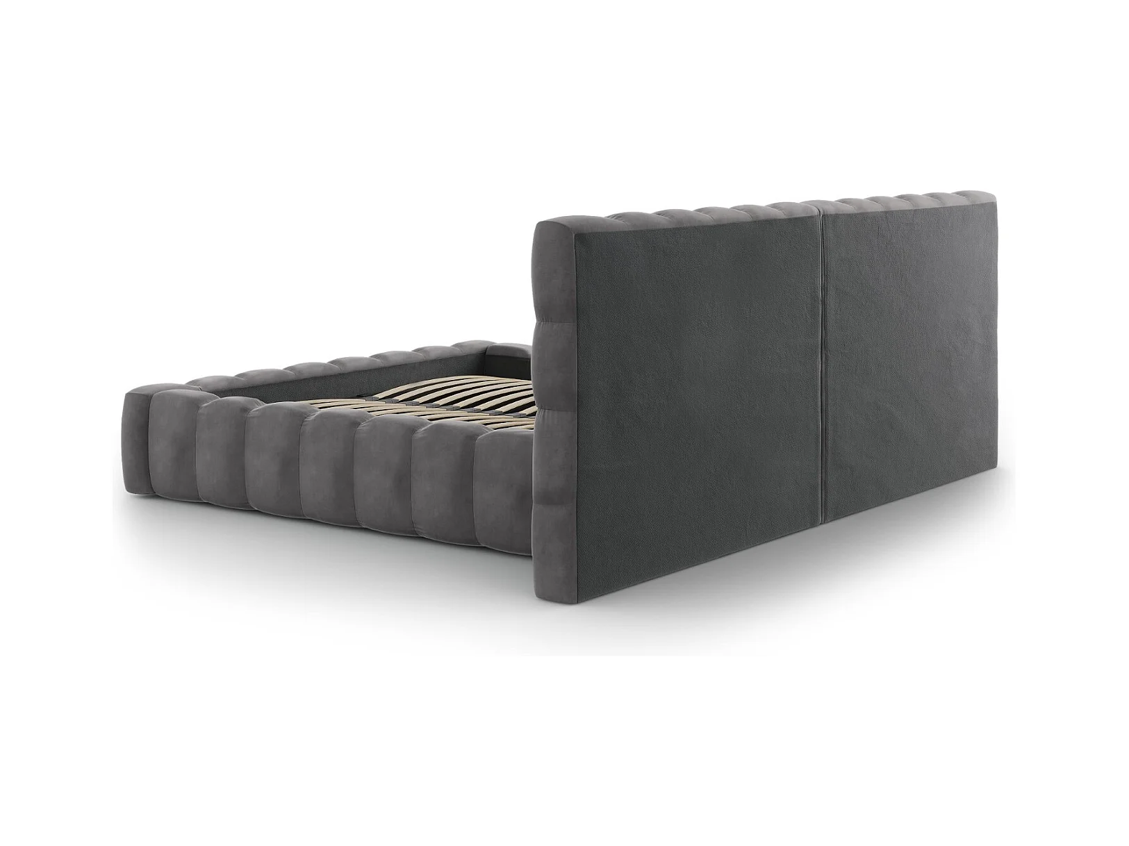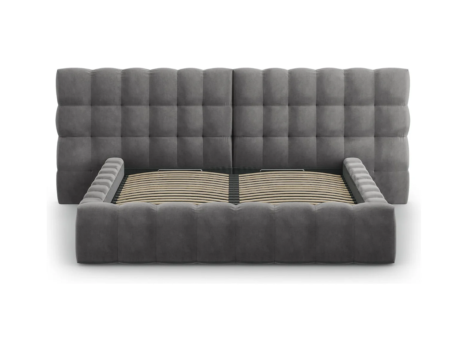 Cosmopolitan Design - Bett mit Bettkasten und Doppelkopfteil "Bali" 180x200cm aus Samt grau - 230x300x100cm