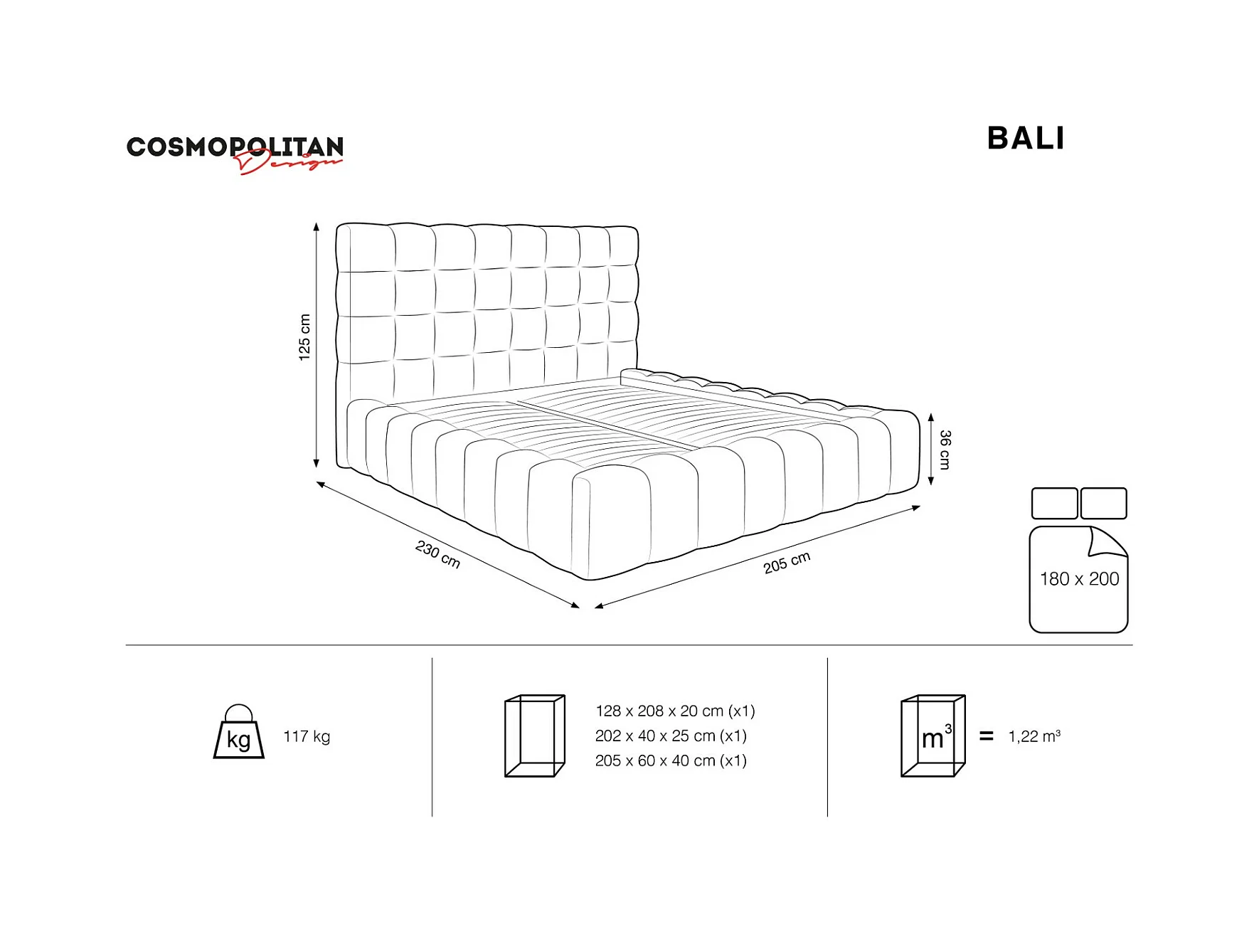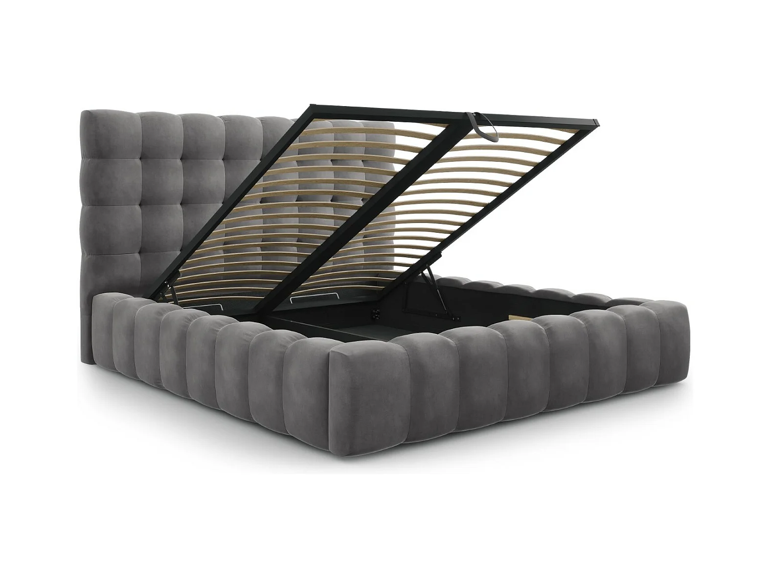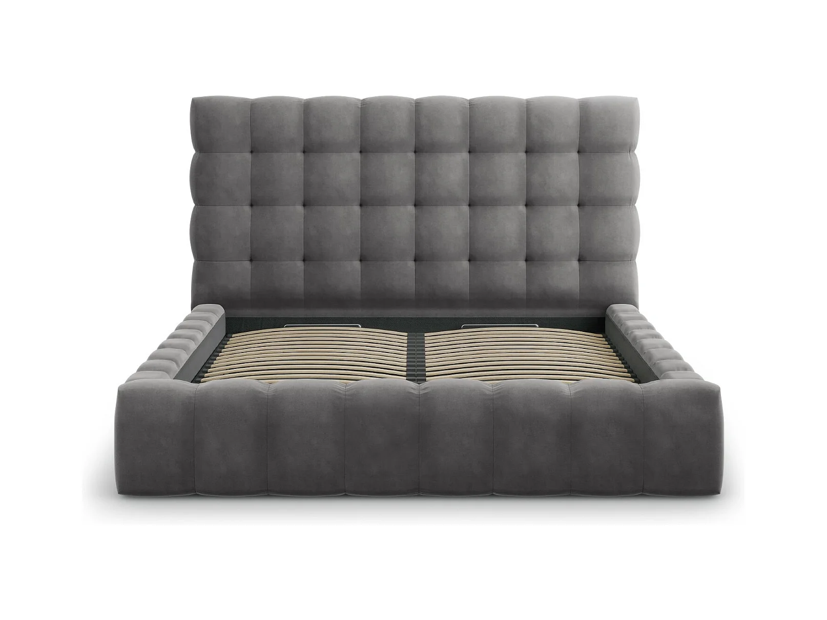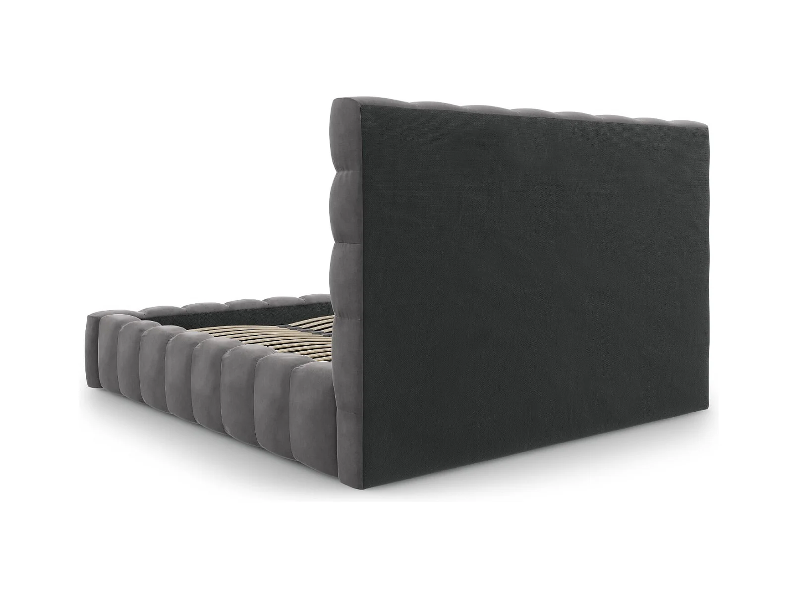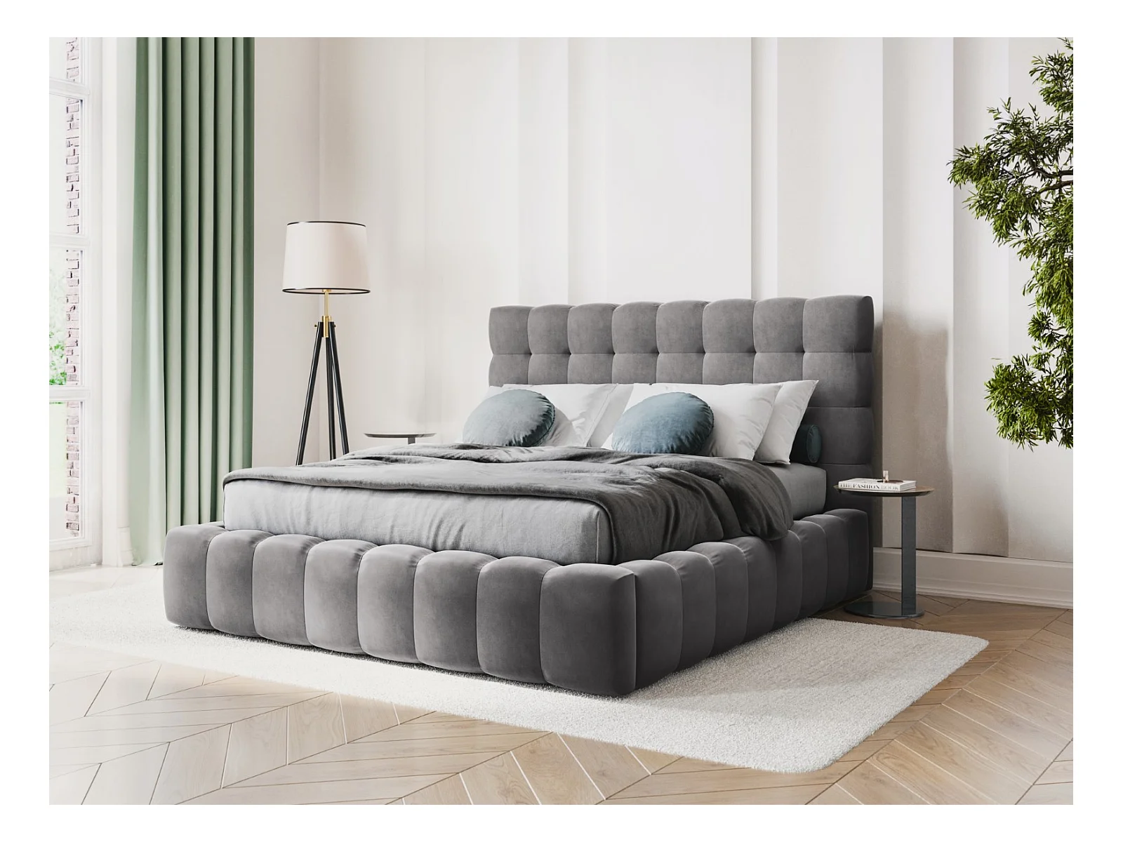 Cosmopolitan Design - Bett mit Bettkasten und Kopfteil "Bali" 180x200cm aus Samt grau - 230x205x125cm
