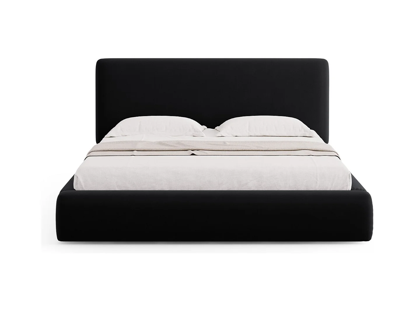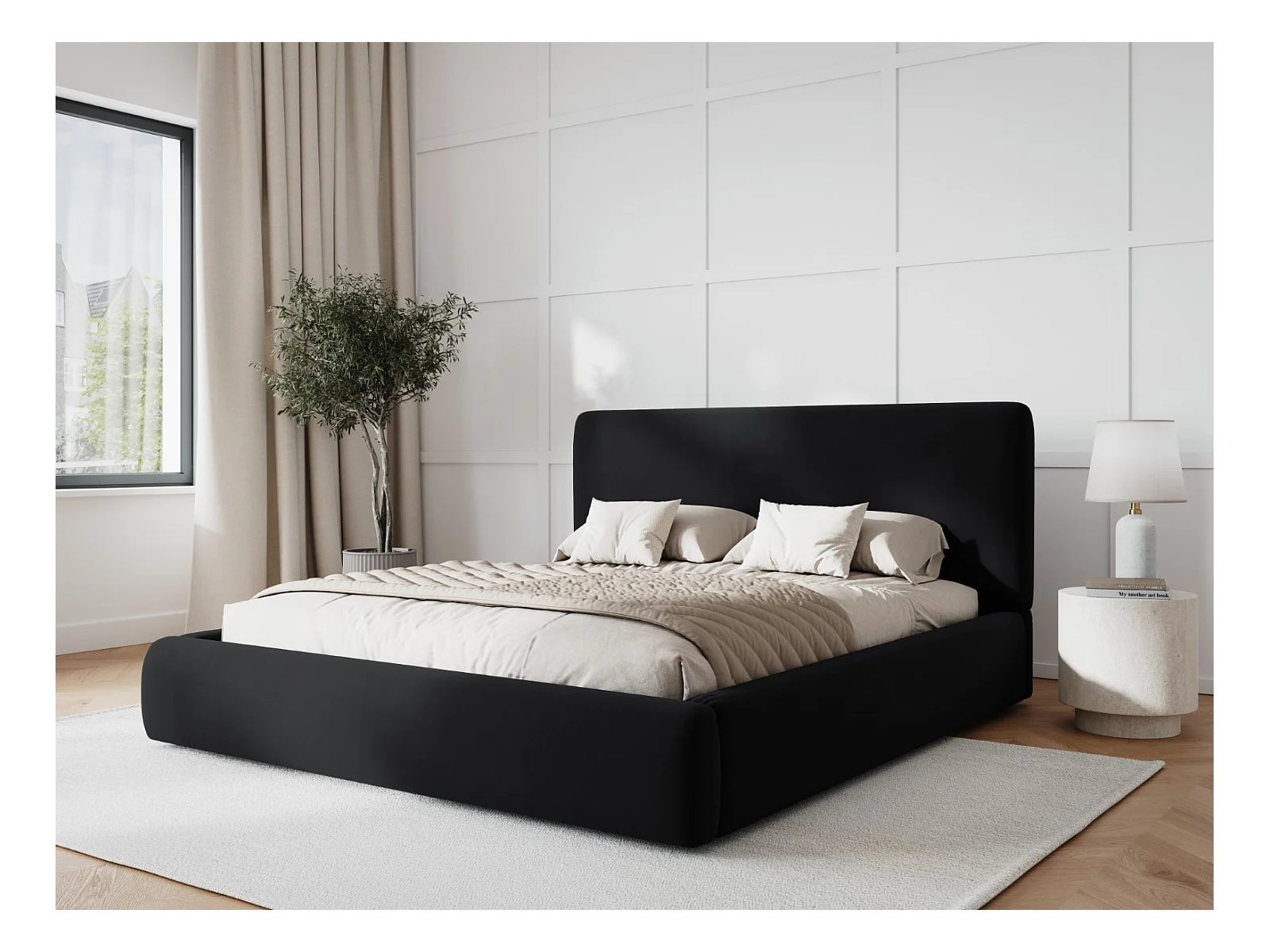 Cosmopolitan Design - Bett mit Bettkasten und Kopfteil "Colonel" 160x200cm aus Samt schwarz - 220x180x100cm
