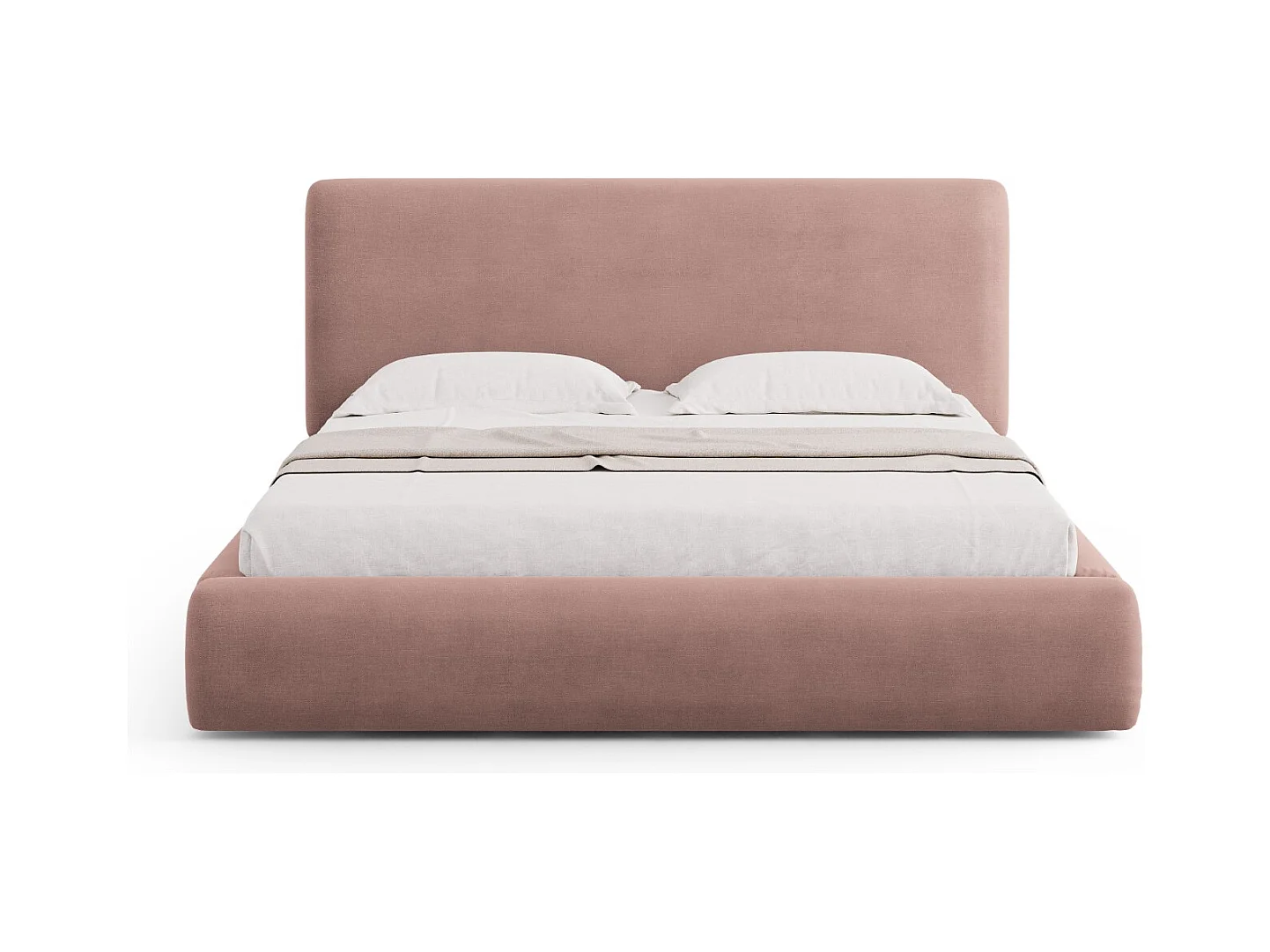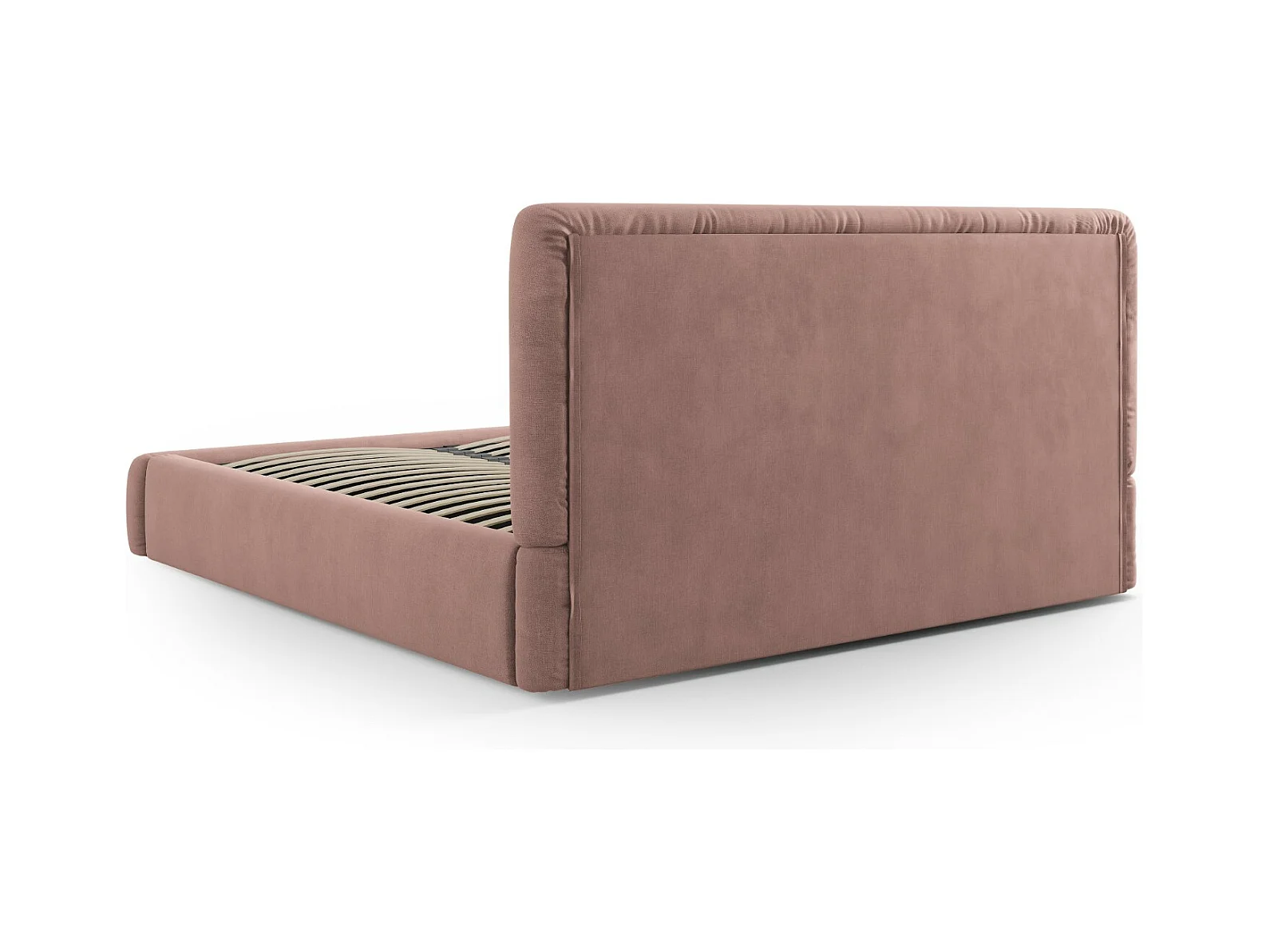Cosmopolitan Design - Bett mit Bettkasten und Kopfteil "Colonel" 200x200cm aus Chenille-Stoff rosa - 220x220x100cm