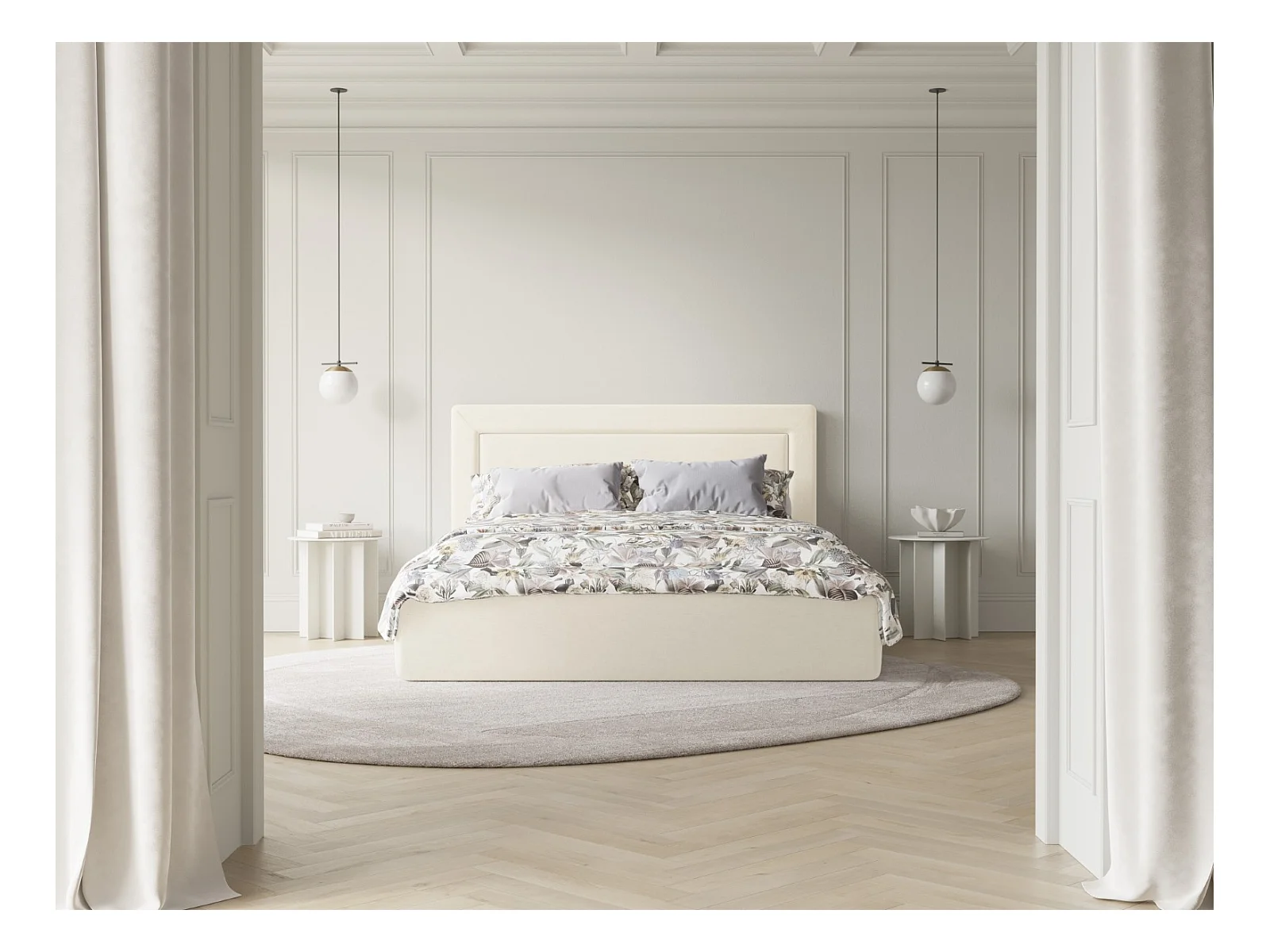 CXL by Christian Lacroix - Bett mit Bettkasten und Kopfteil "Valerie" 140x200cm aus Chenille-Stoff elfenbein - 230x165x120cm