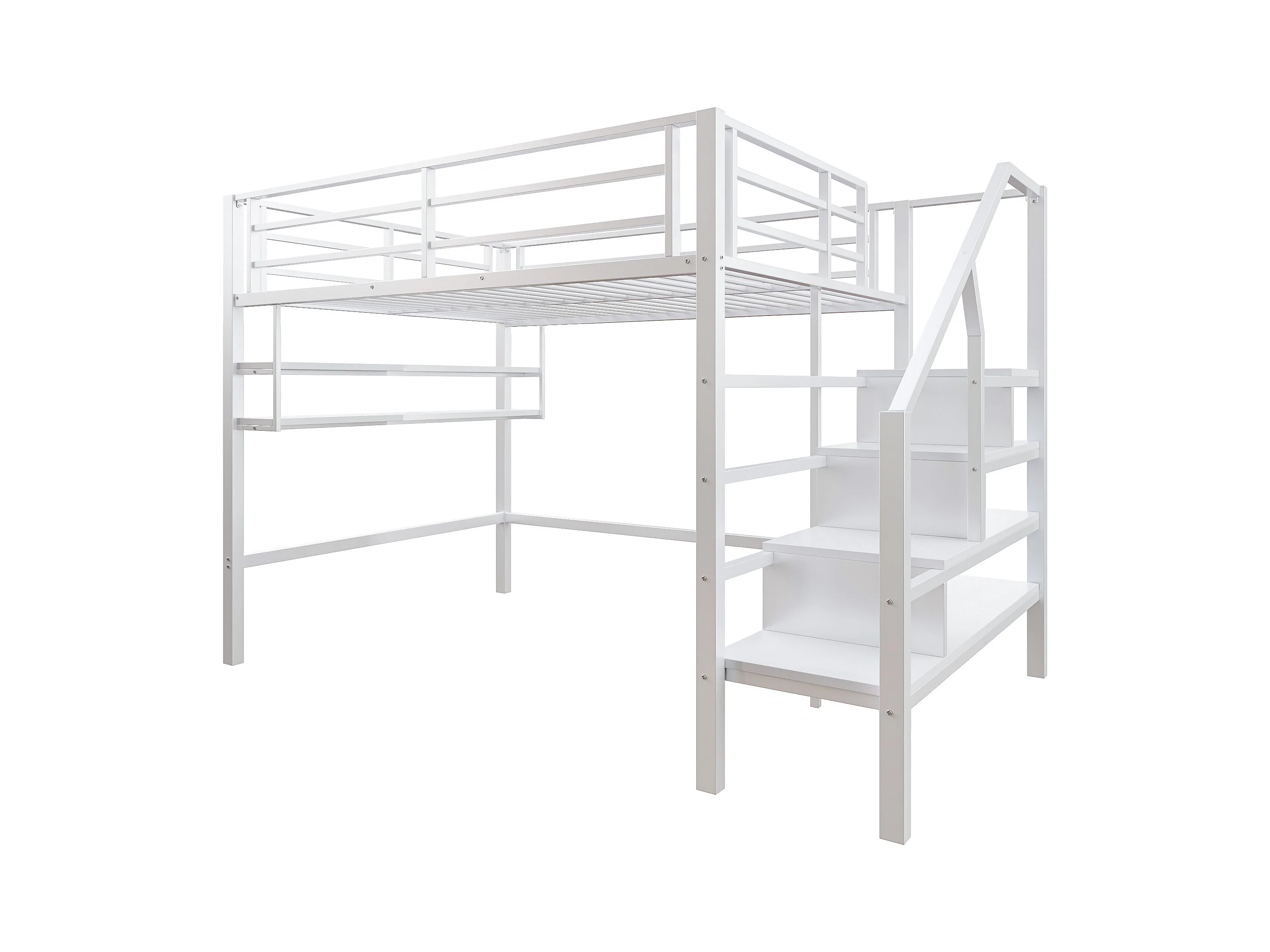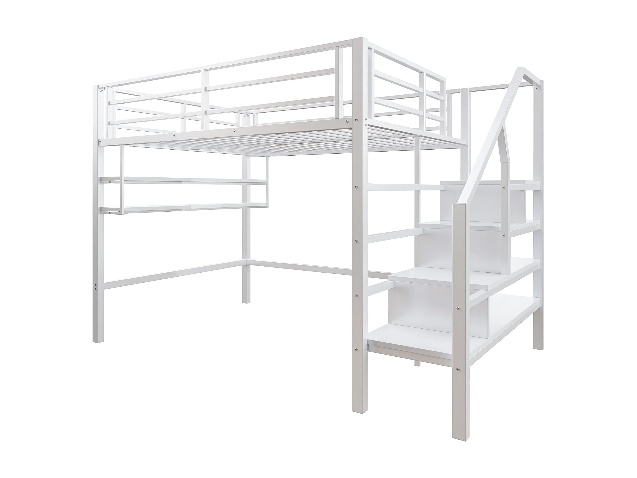 Bett mit erhöhtem Bettgestell 140 x 200 cm – mit Regalen und offenem Stauraum – weißes Metall – ohne Matratze Matratze