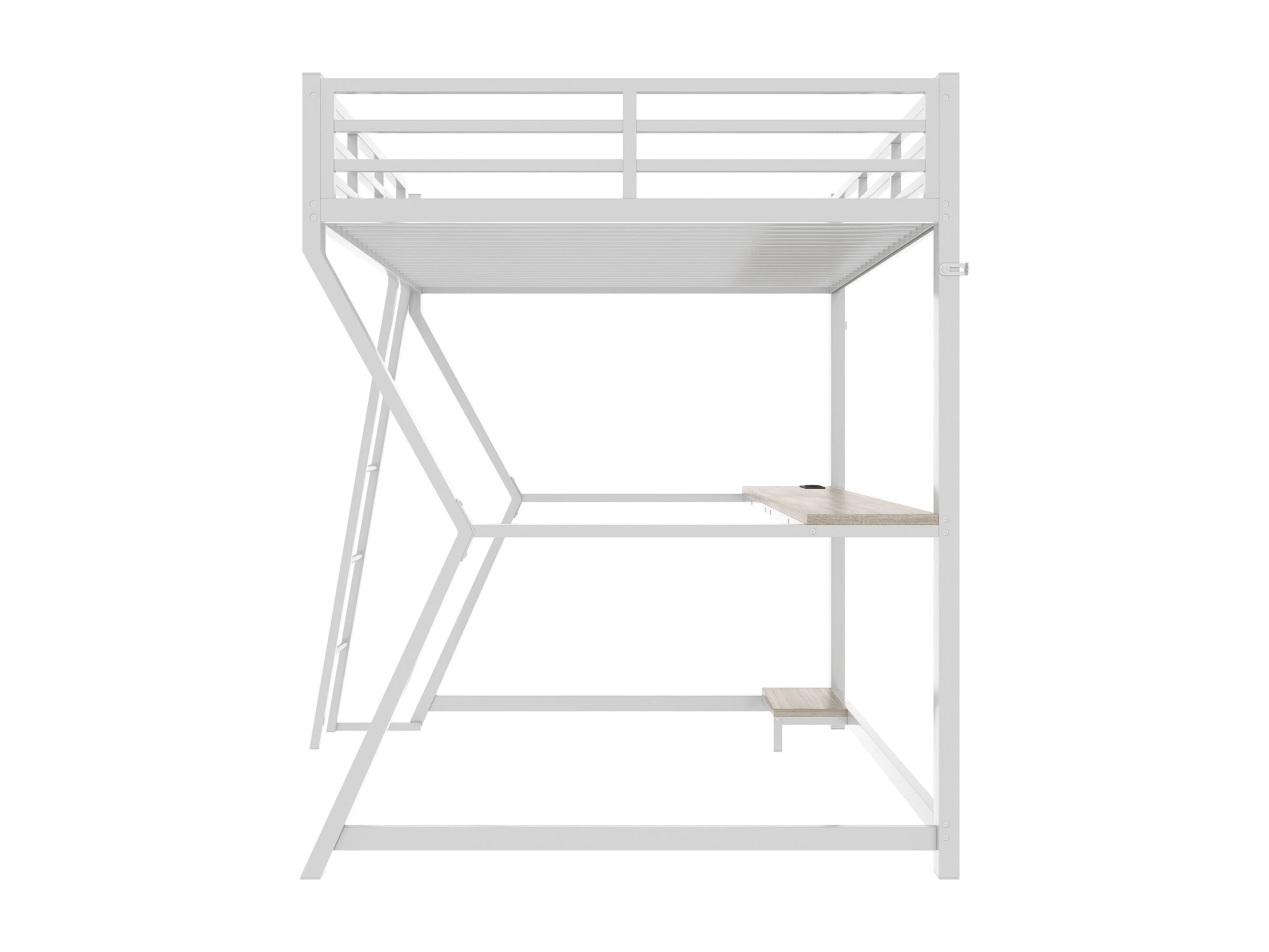 Bett mit erhöhtem Bettgestell 90 x 200 cm – mit LED-Beleuchtung und USB-Anschluss – weißes Metall – ohne Matratze