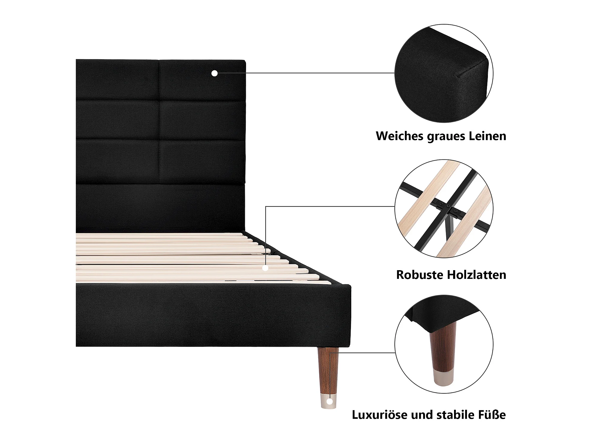 Bett mit Kopfteil – 140 x 200 cm – Leinenstoff – Grau