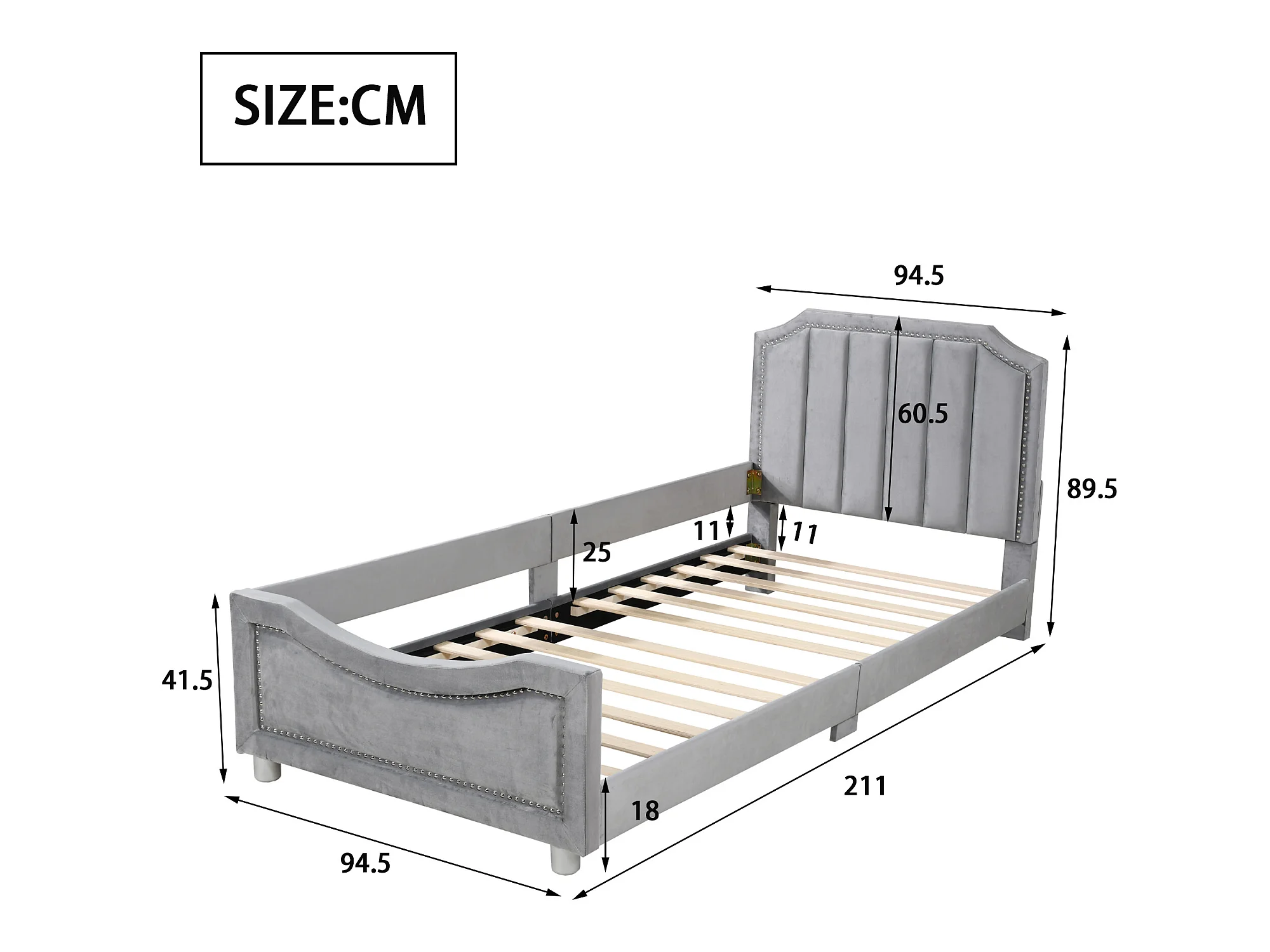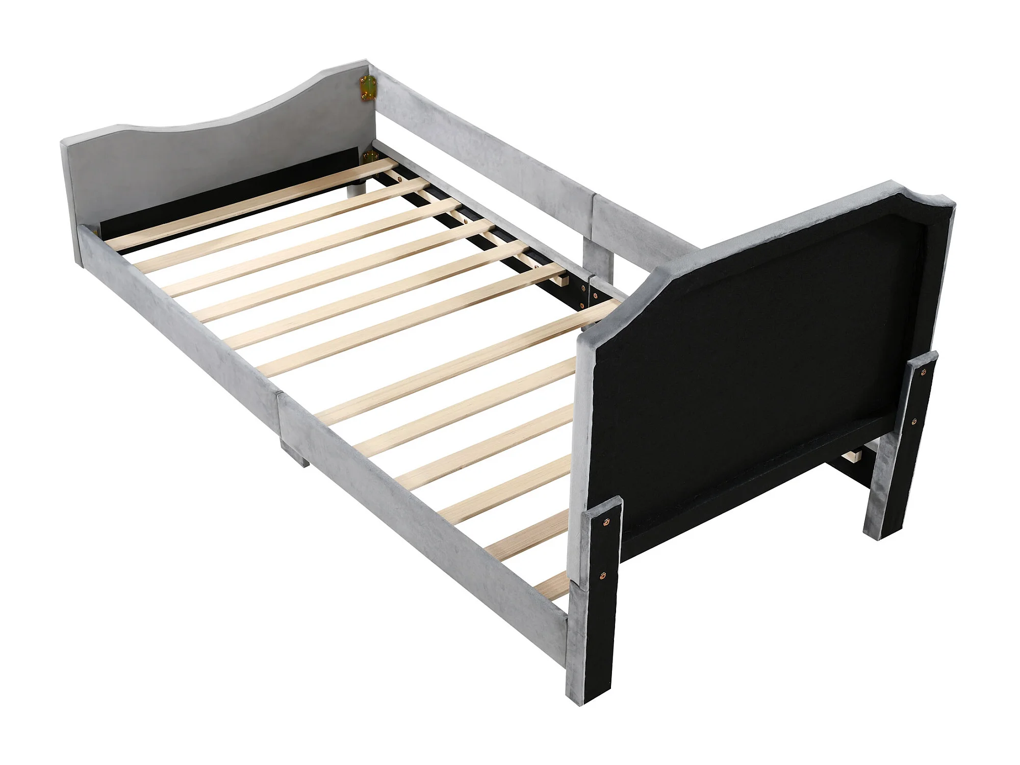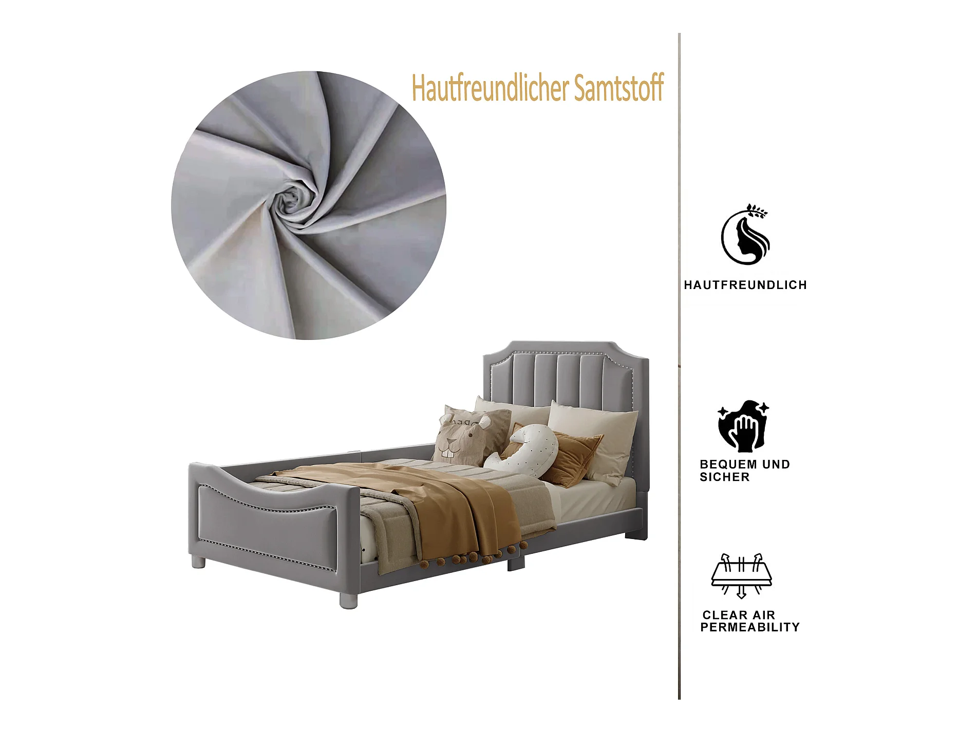 Bett mit Kopfteil – 90 x 200 cm – Flanellstoff – für Kinder oder Babys – Farbe Grau