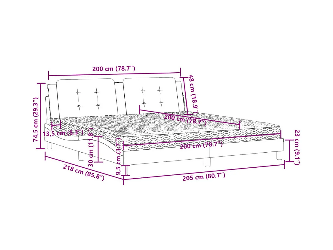 Bett mit Matratze "Zadar" Weiß 200x200 cm Kunstleder