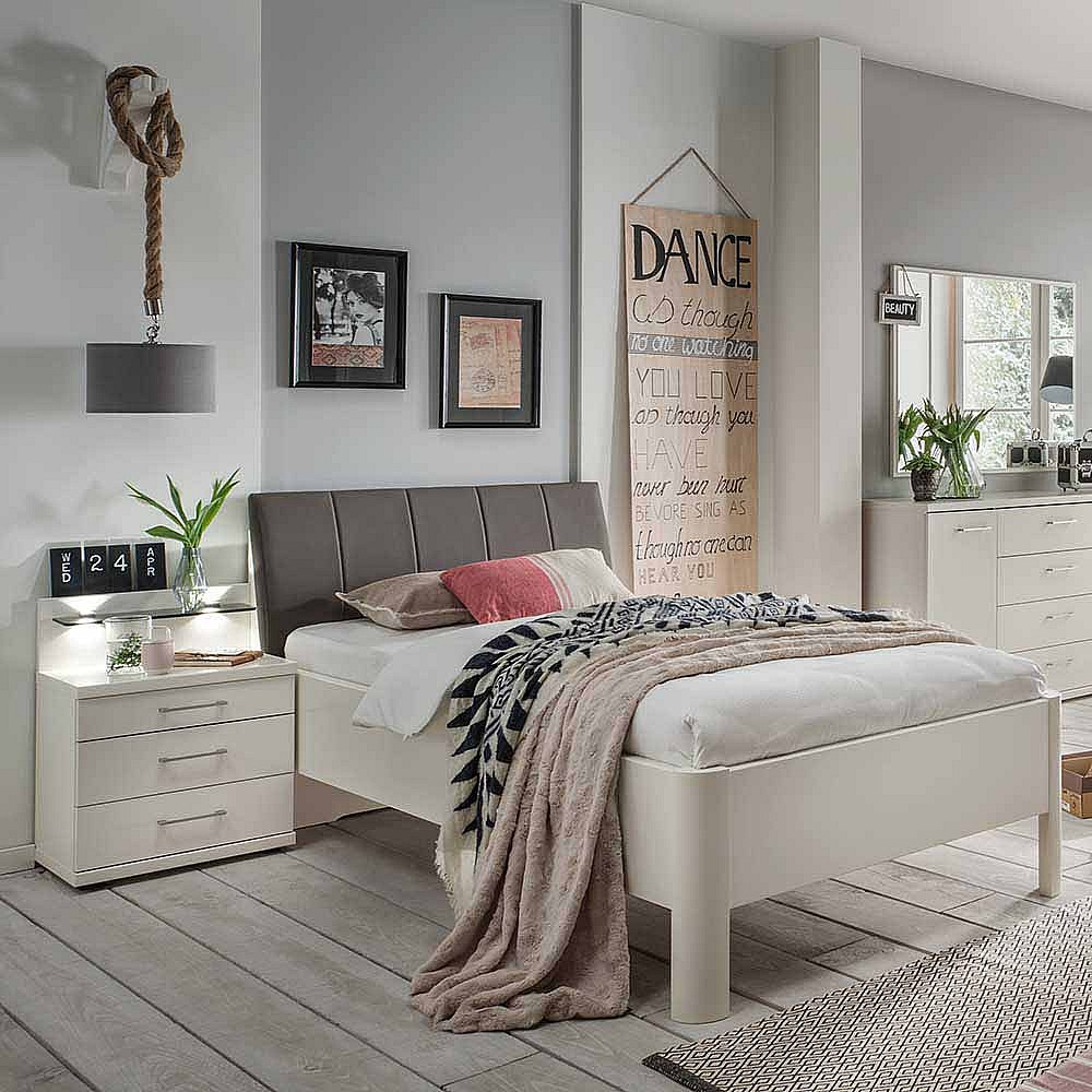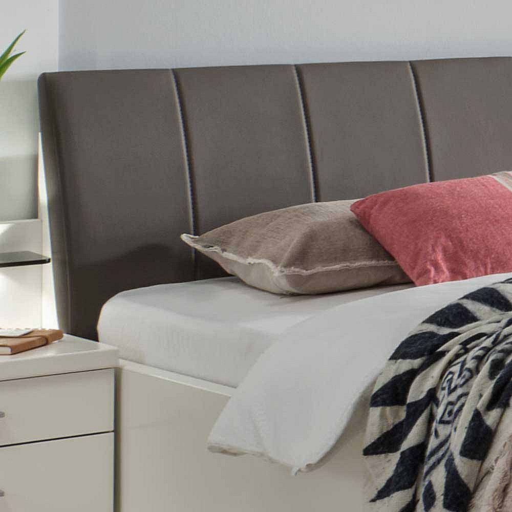 Bett mit Nachtkommode in Wei� Polsterkopfteil in Braun (zweiteilig)