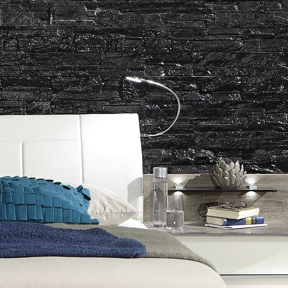 Bett mit Polsterkopfteil in Wei� Beleuchtung