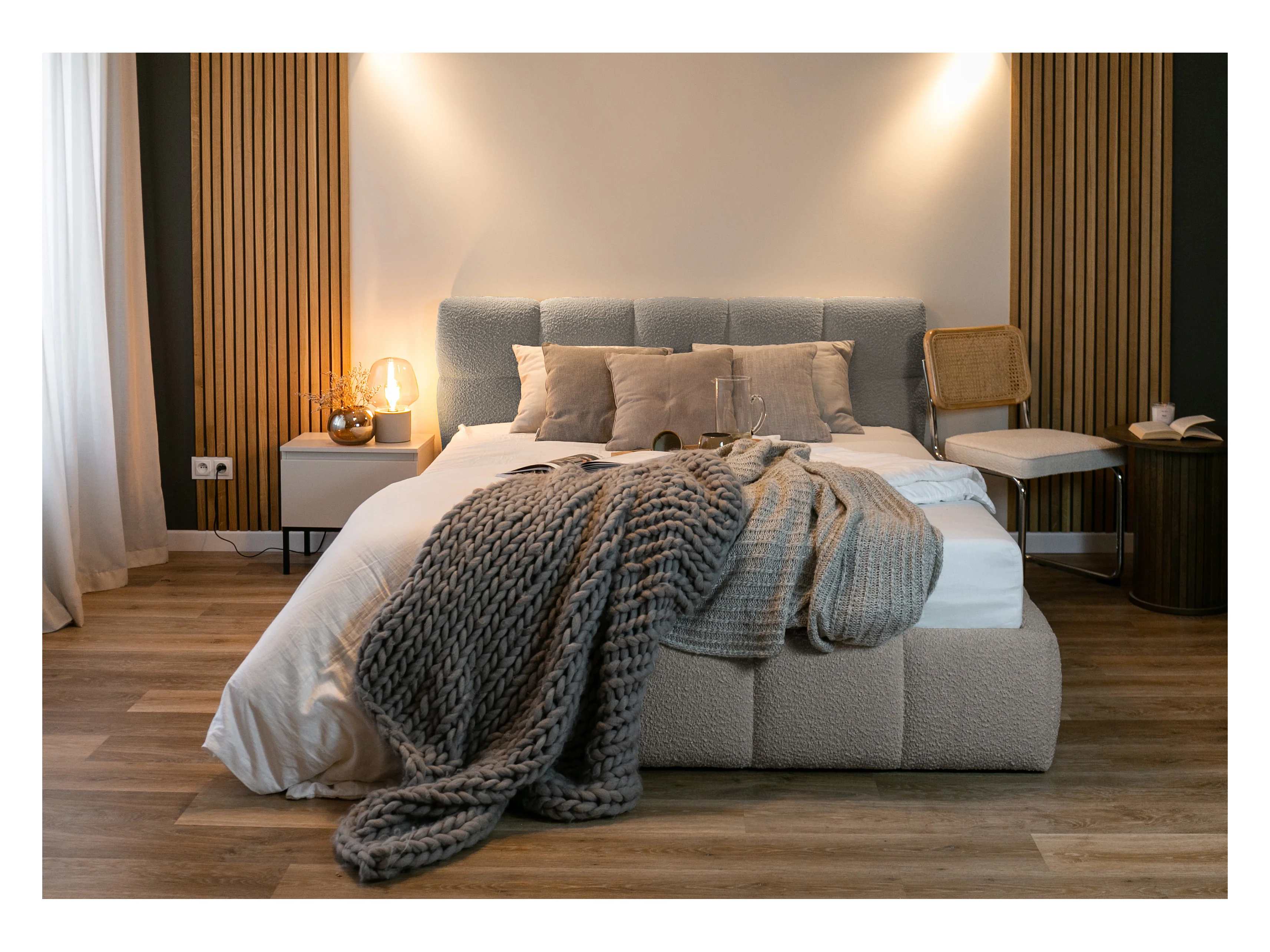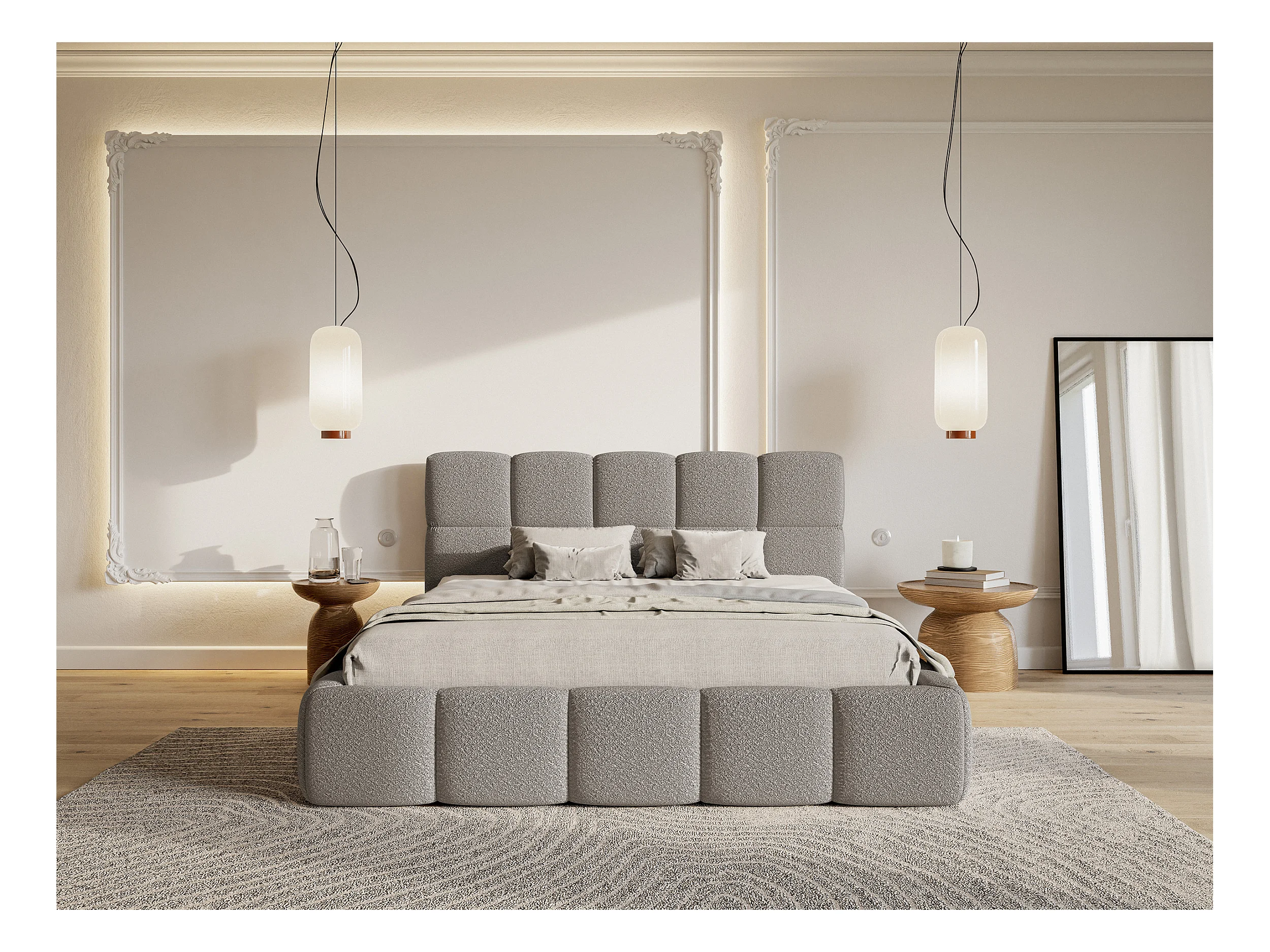Bett mit Polsterrahmen - 160 cm - Boucle-Bezug in Grau - CLOUDY
