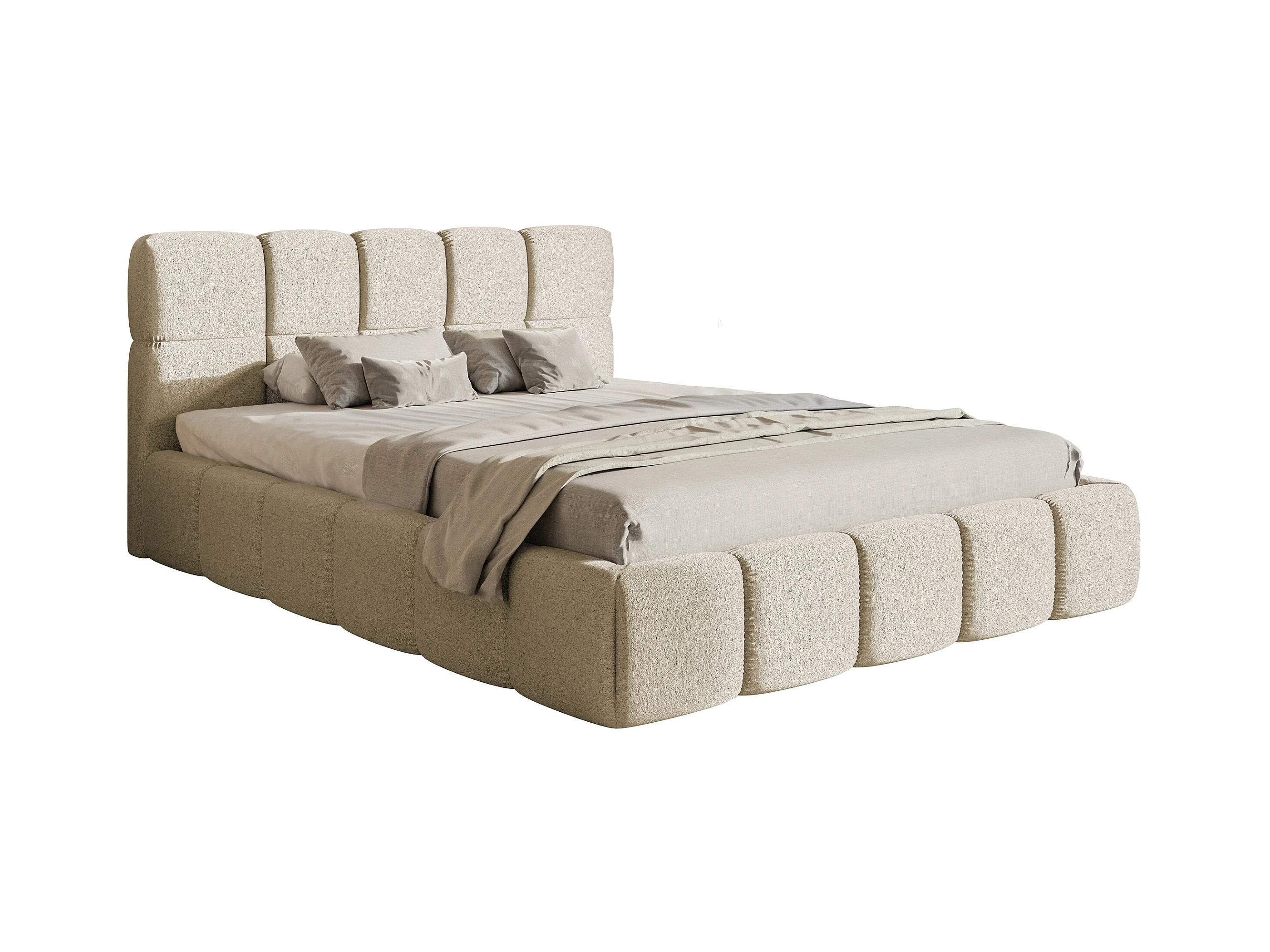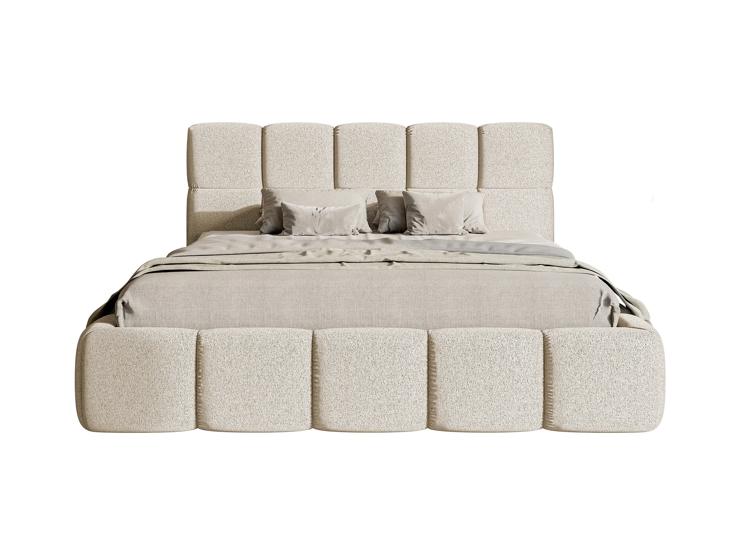Bett mit Polsterrahmen - 160 cm - Chenille-Bezug in Hellbeige - CLOUDY