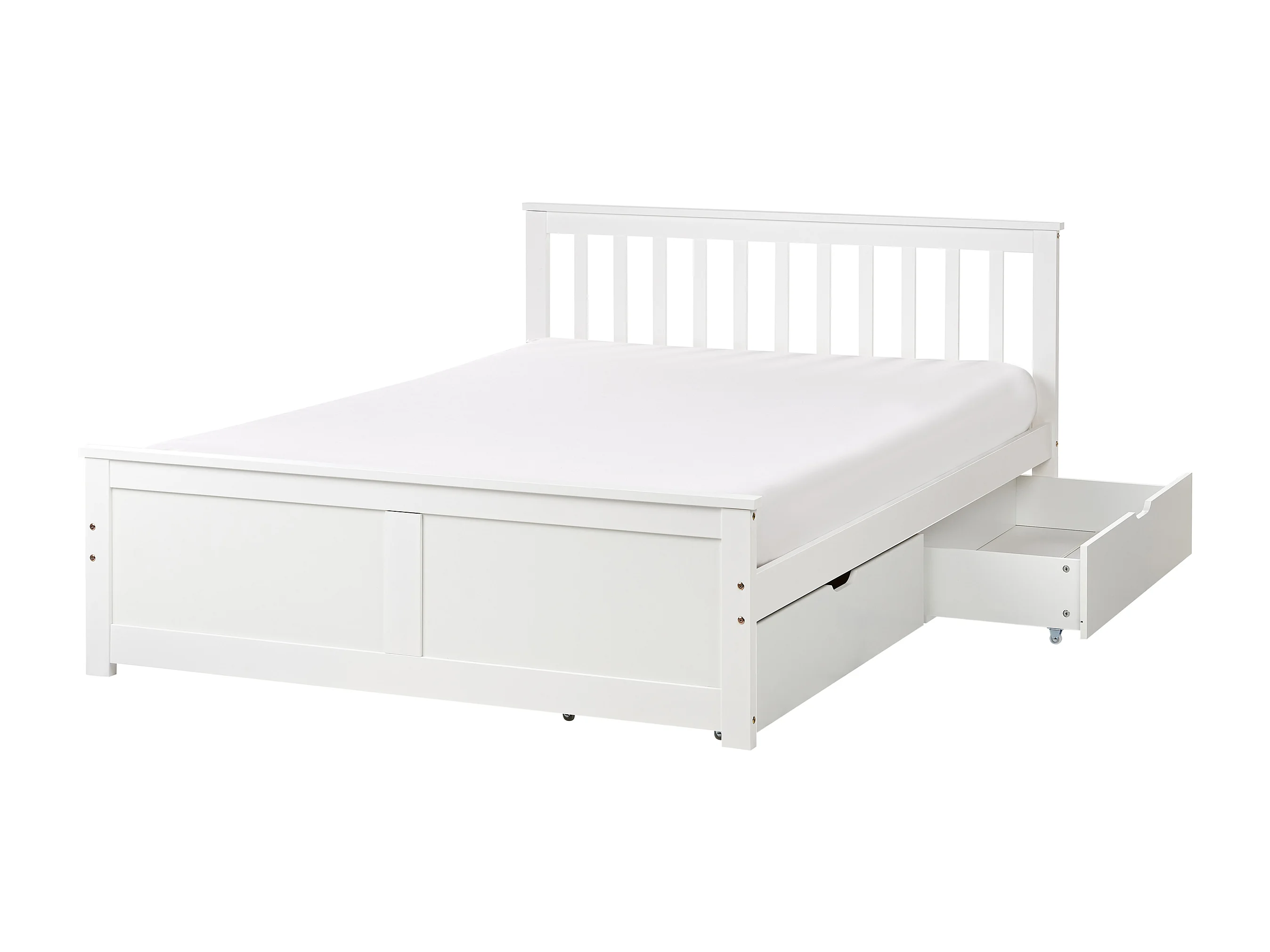Bett mit Schubladen Kiefernholz OLENDON 140 x 200 cm Weiss