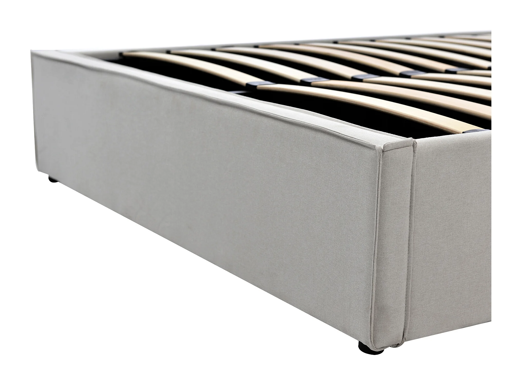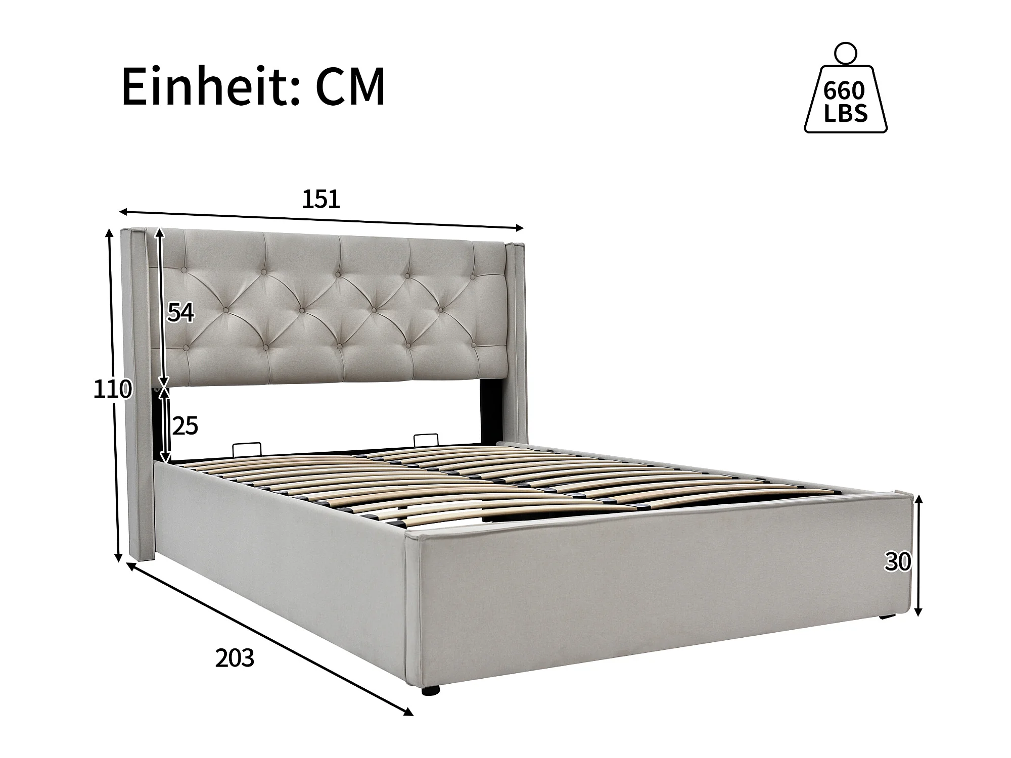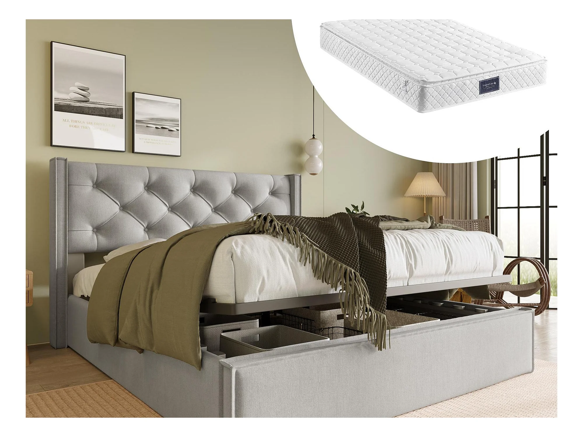 Bett mit Stauraum 140 x 200 cm – Leinen – Lattenrost – Hellgrau + Matratze