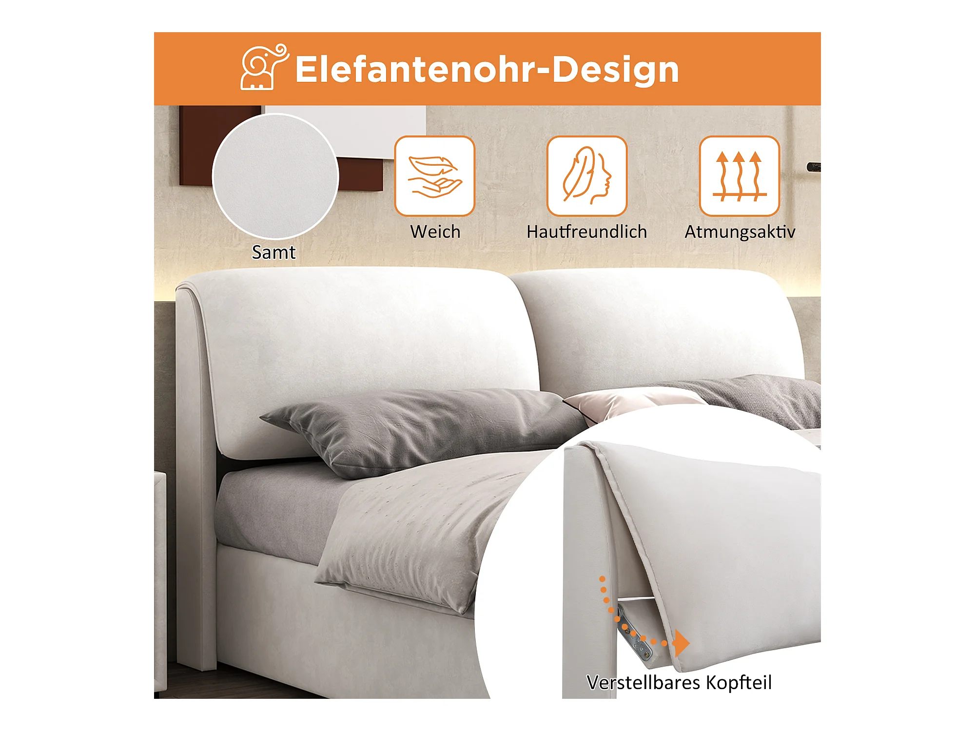 Bett mit Stauraum 180 x 200 cm für Erwachsene mit 3 Schubladen – Samtstoff – Boxspring inklusive – Weiß