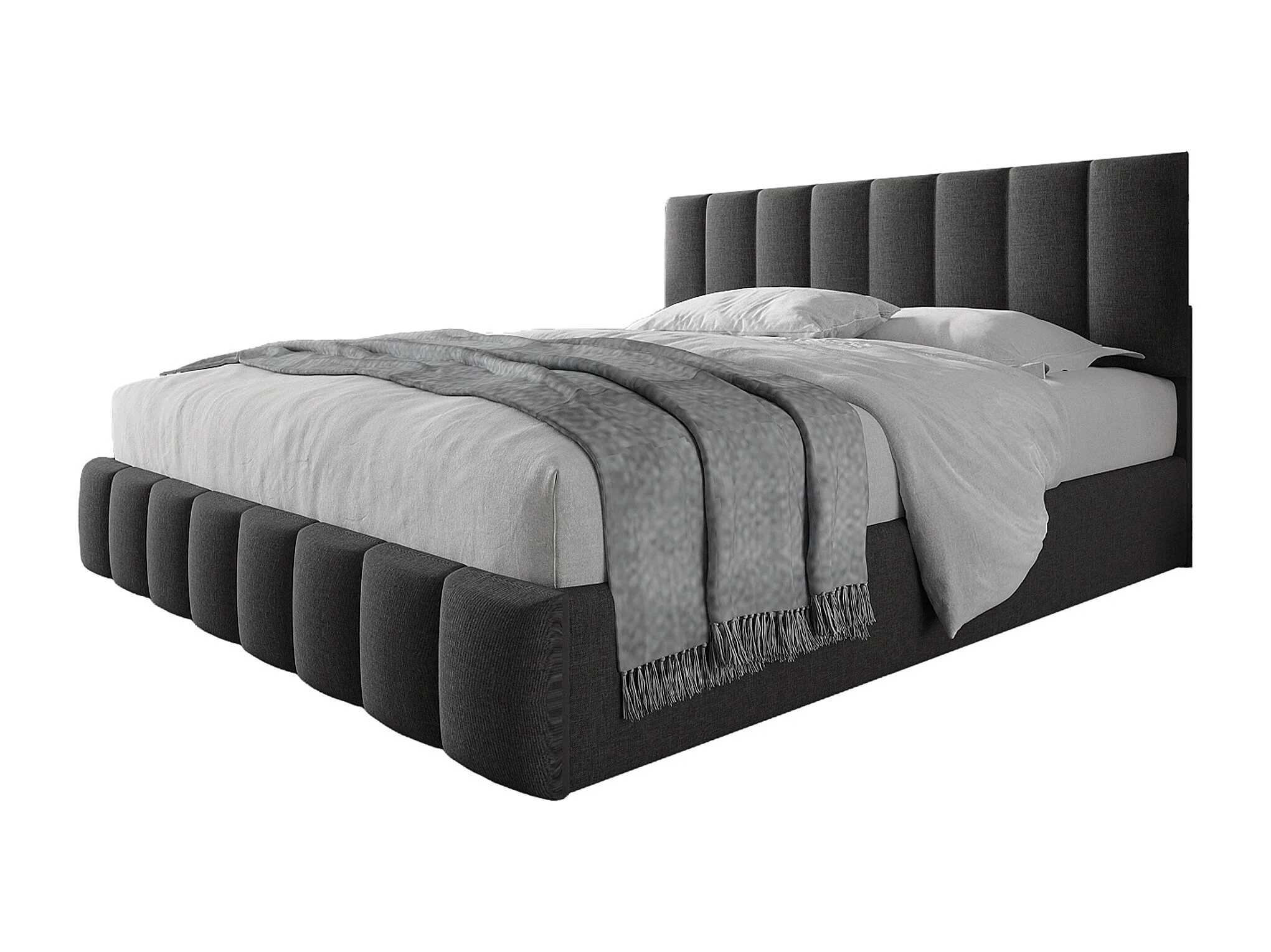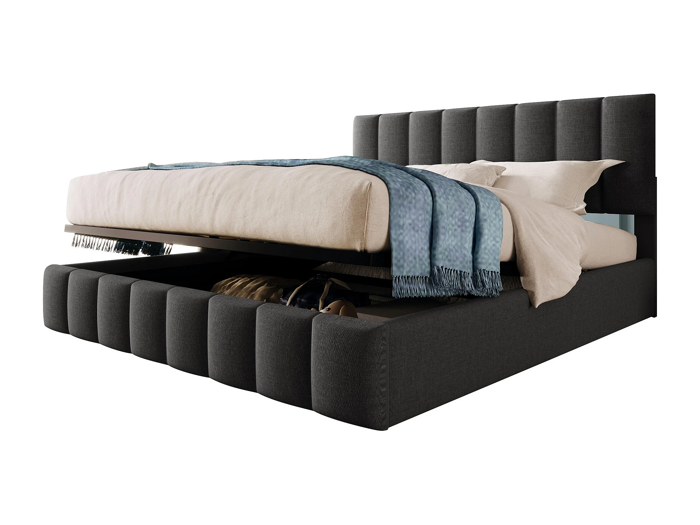 Bett mit Stauraum aus Leinen – gepolstertes Bett mit verstellbarem Kopfteil – Lattenrost – 140 x 200 cm – grau