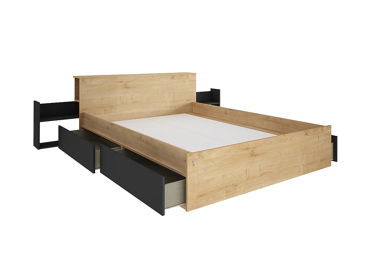Bett mit Stauraum FRANK - 140x190 cm - Eichenfarben & Anthrazit