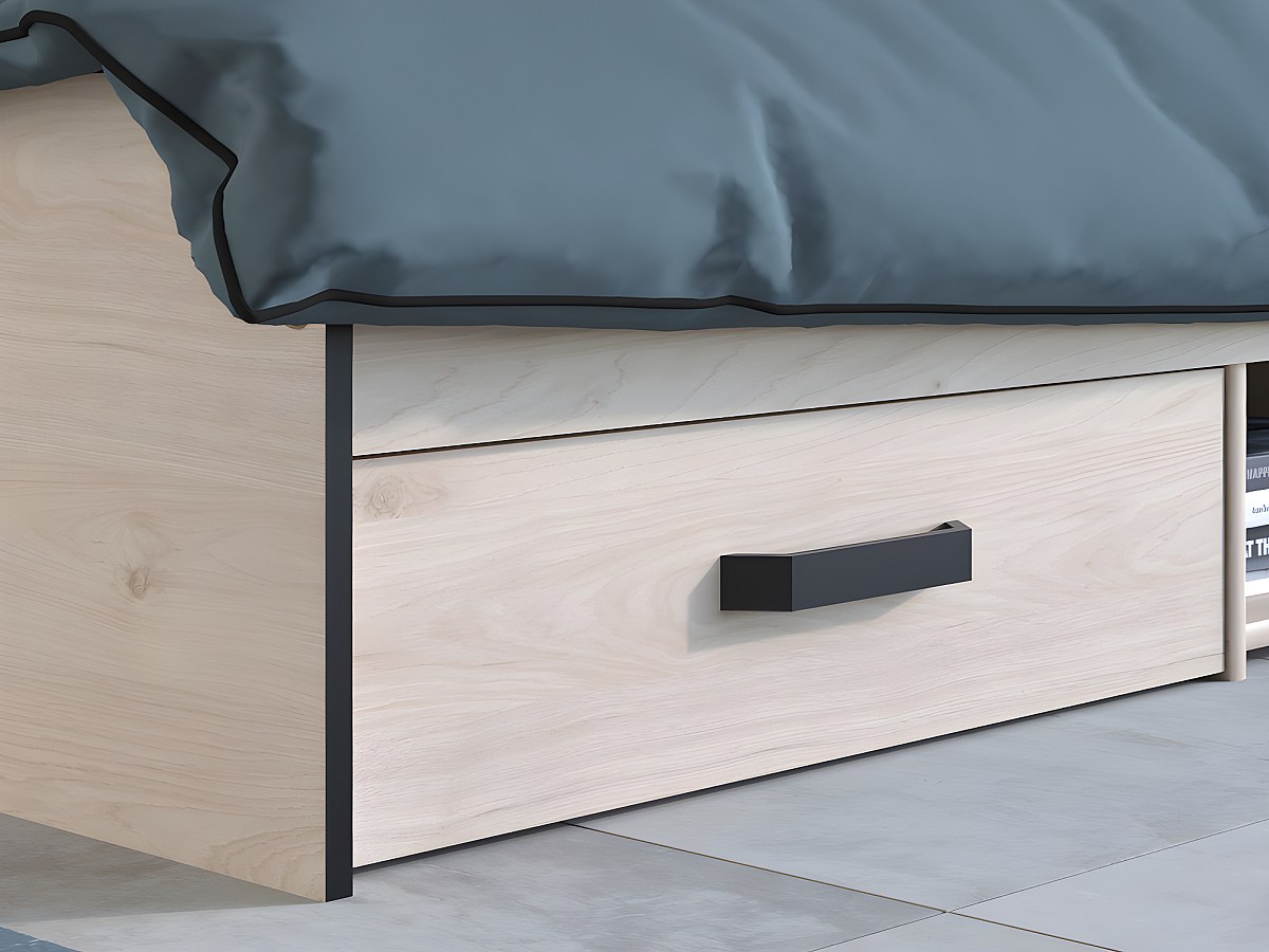 Bett mit Stauraum PABLO - 2 Schubladen & 1 Ablage - 140 x 190 cm - Eichefarben