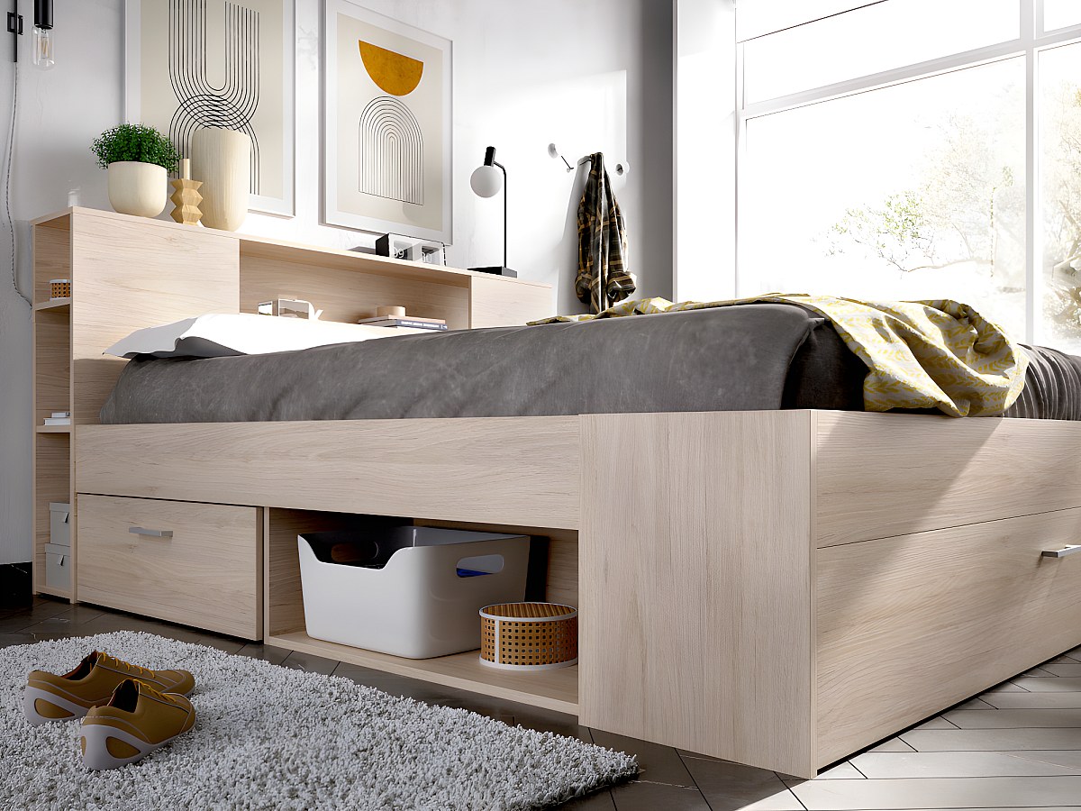 Bett mit Stauraum & Schubladen LEANDRE - 140x190 cm - Eichenholzfarben