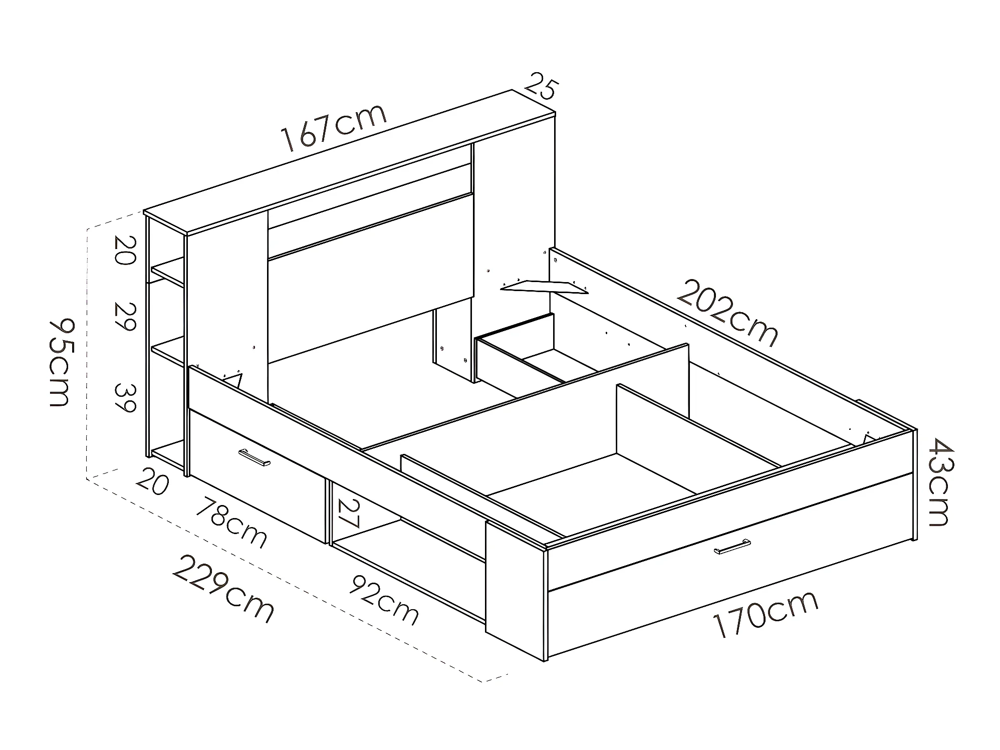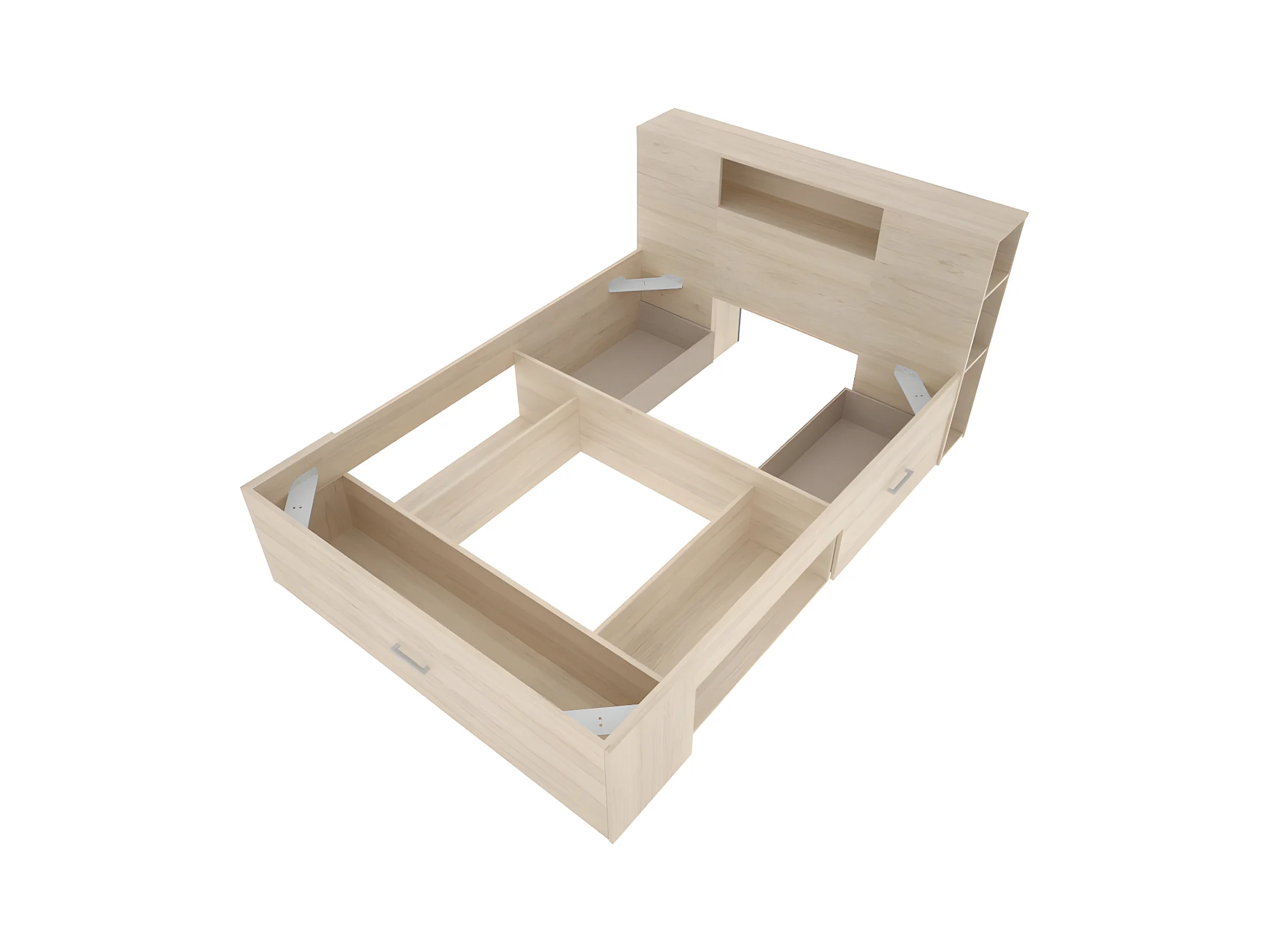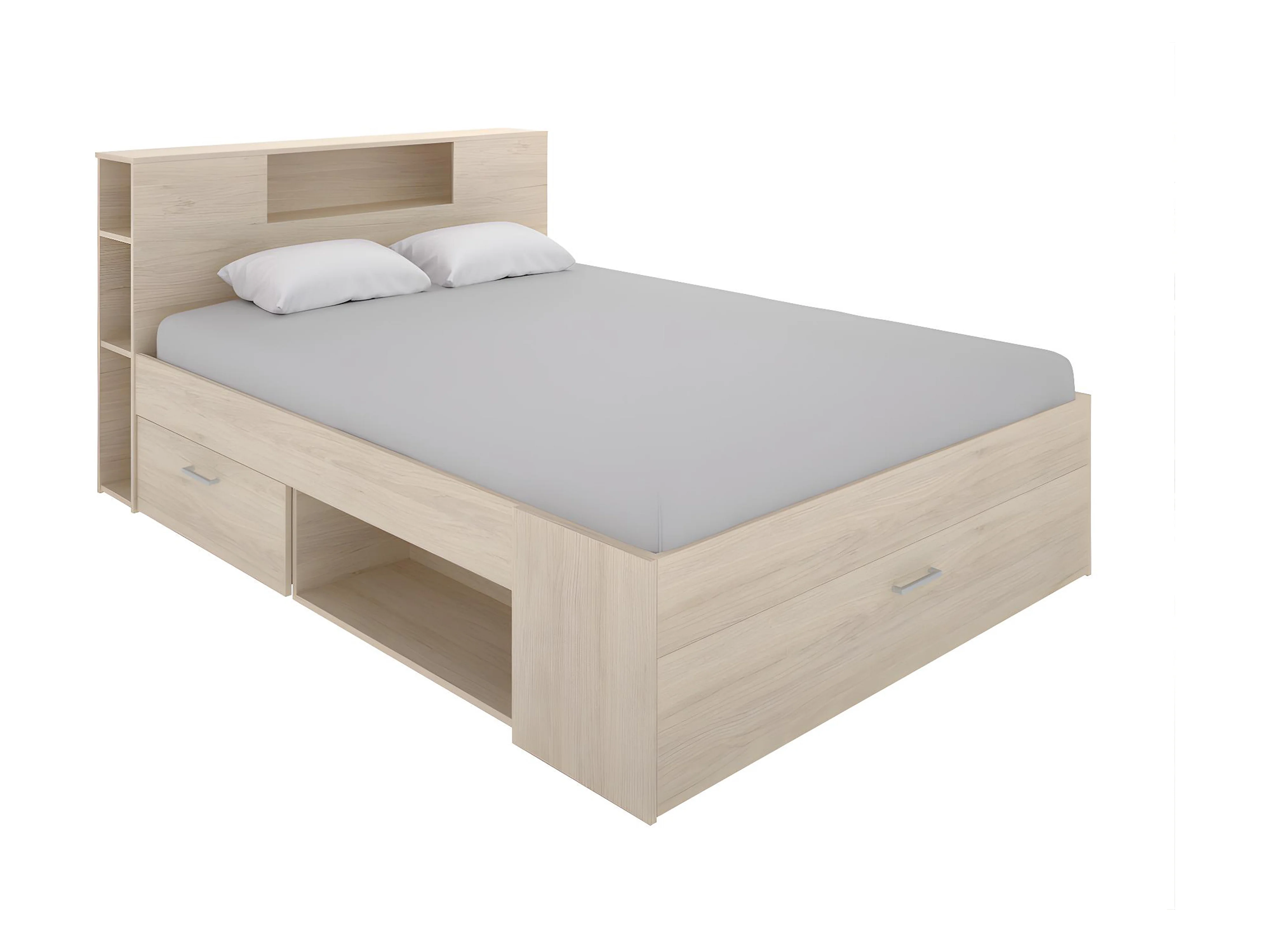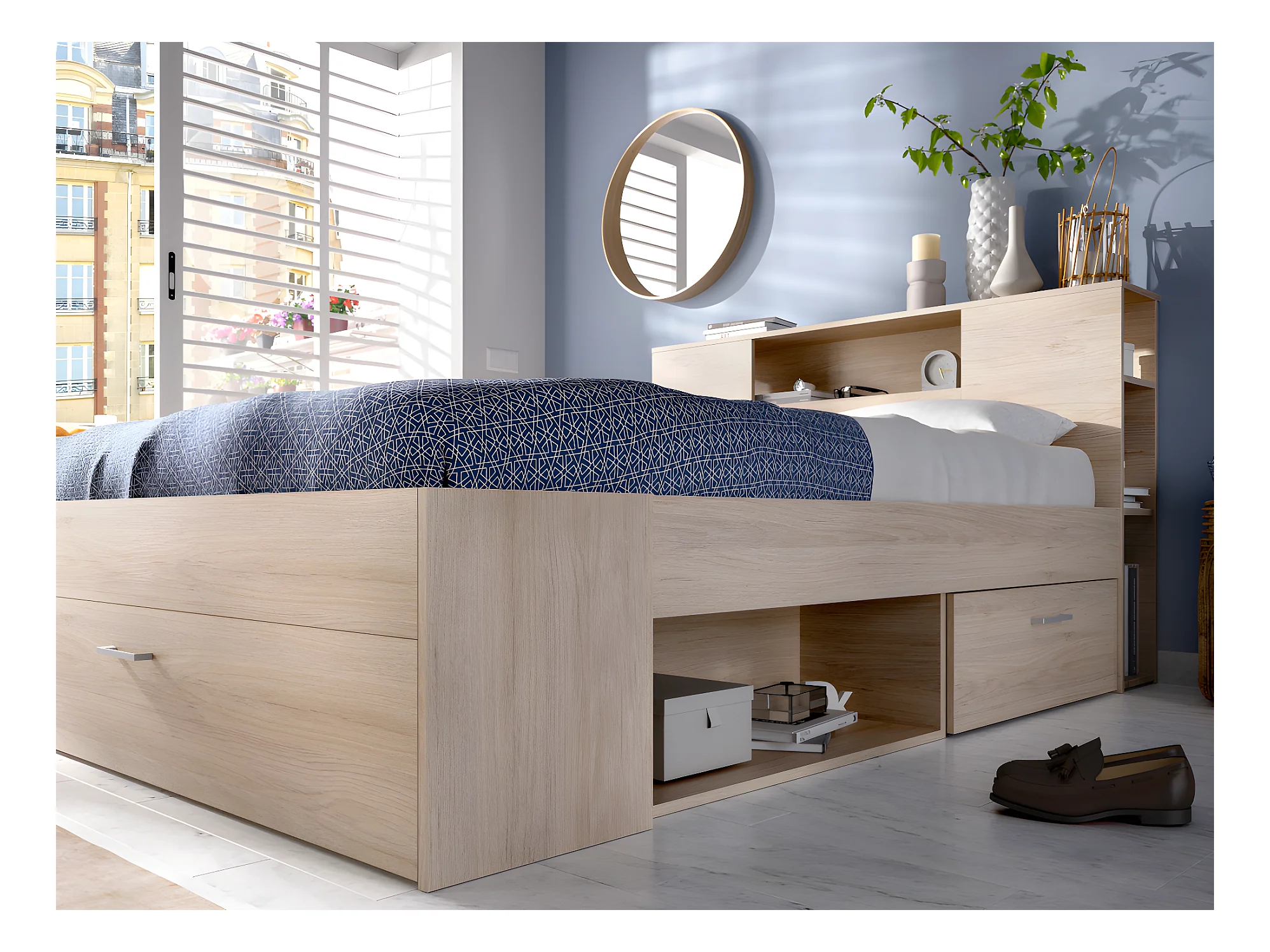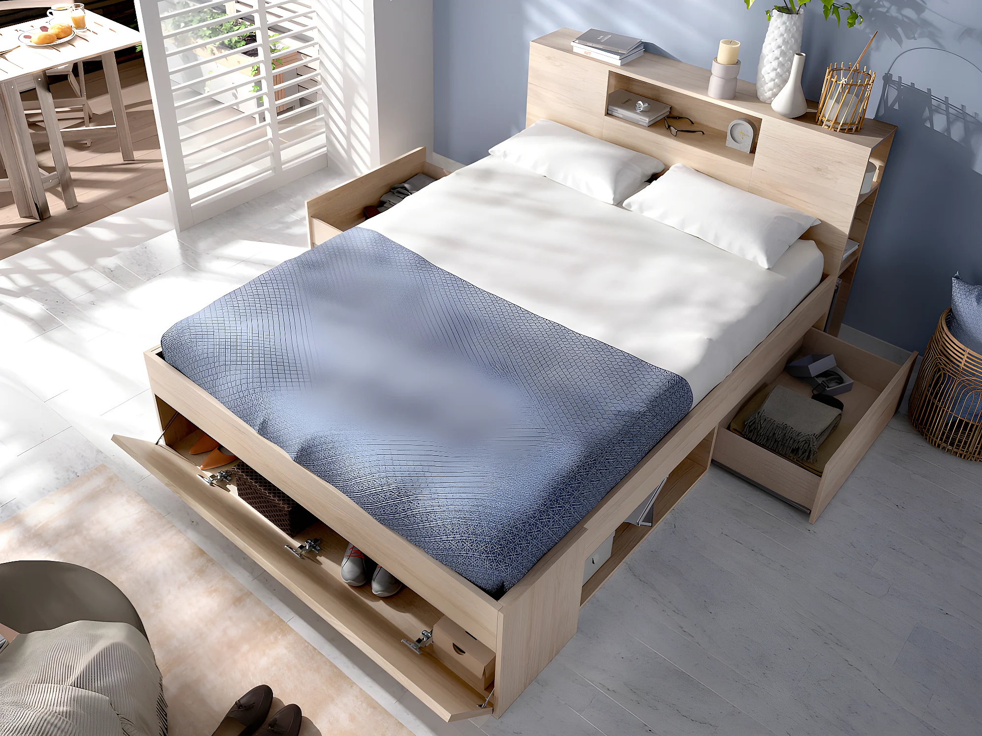 Bett mit Kopfteil, Stauraum & Schubladen - 160 x 200 cm - Naturfarben - LEANDRE