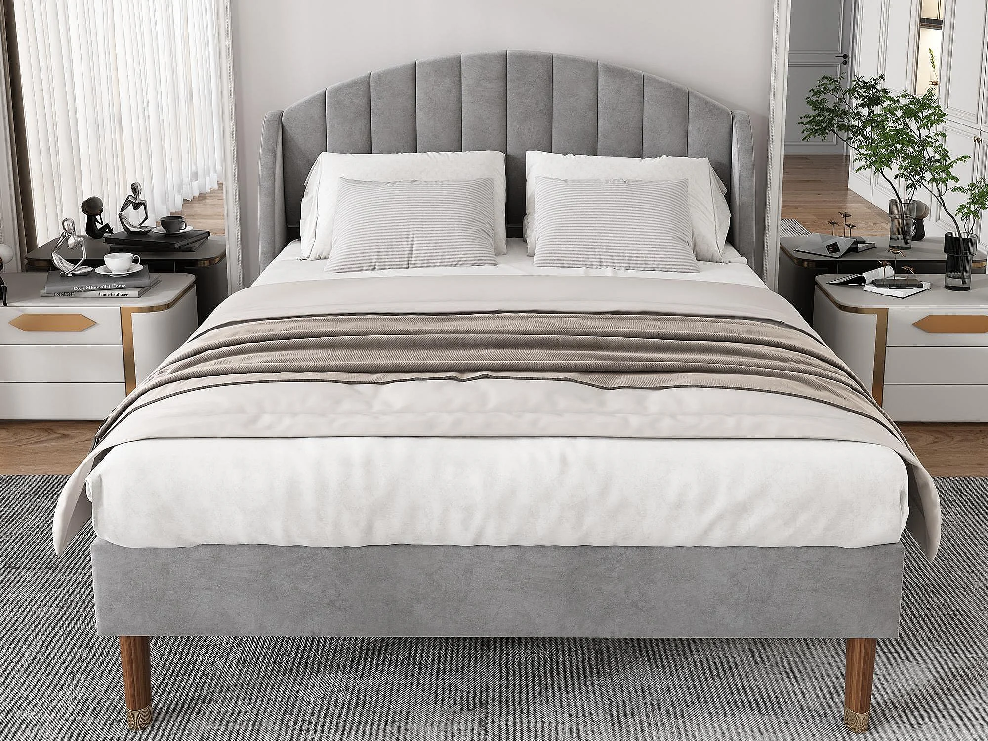 Bett mit verstellbarem Kopfteil – 160 x 200 cm – Samt – Lattenrost – graue Farbe