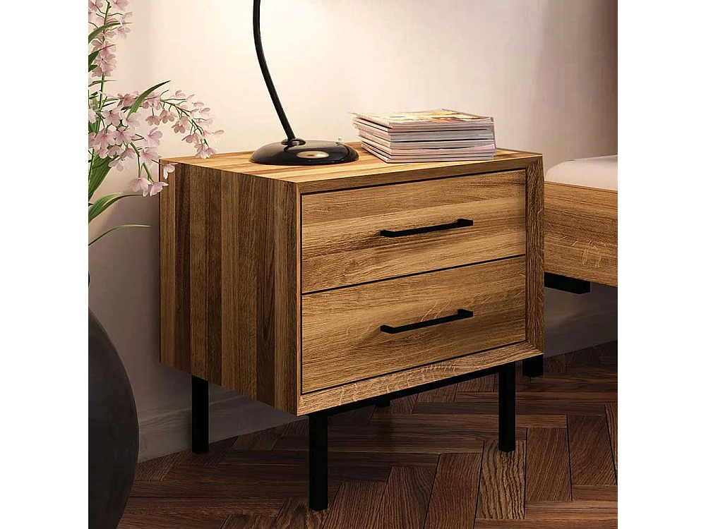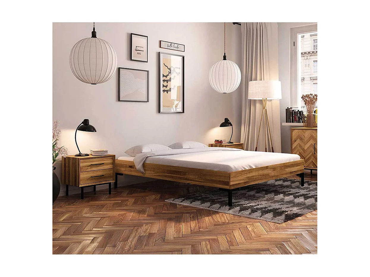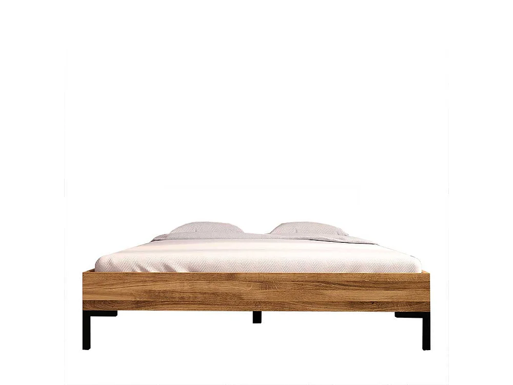 Bett ohne Kopfteil aus Wildeiche Massivholz Vierfußgestell aus Metall