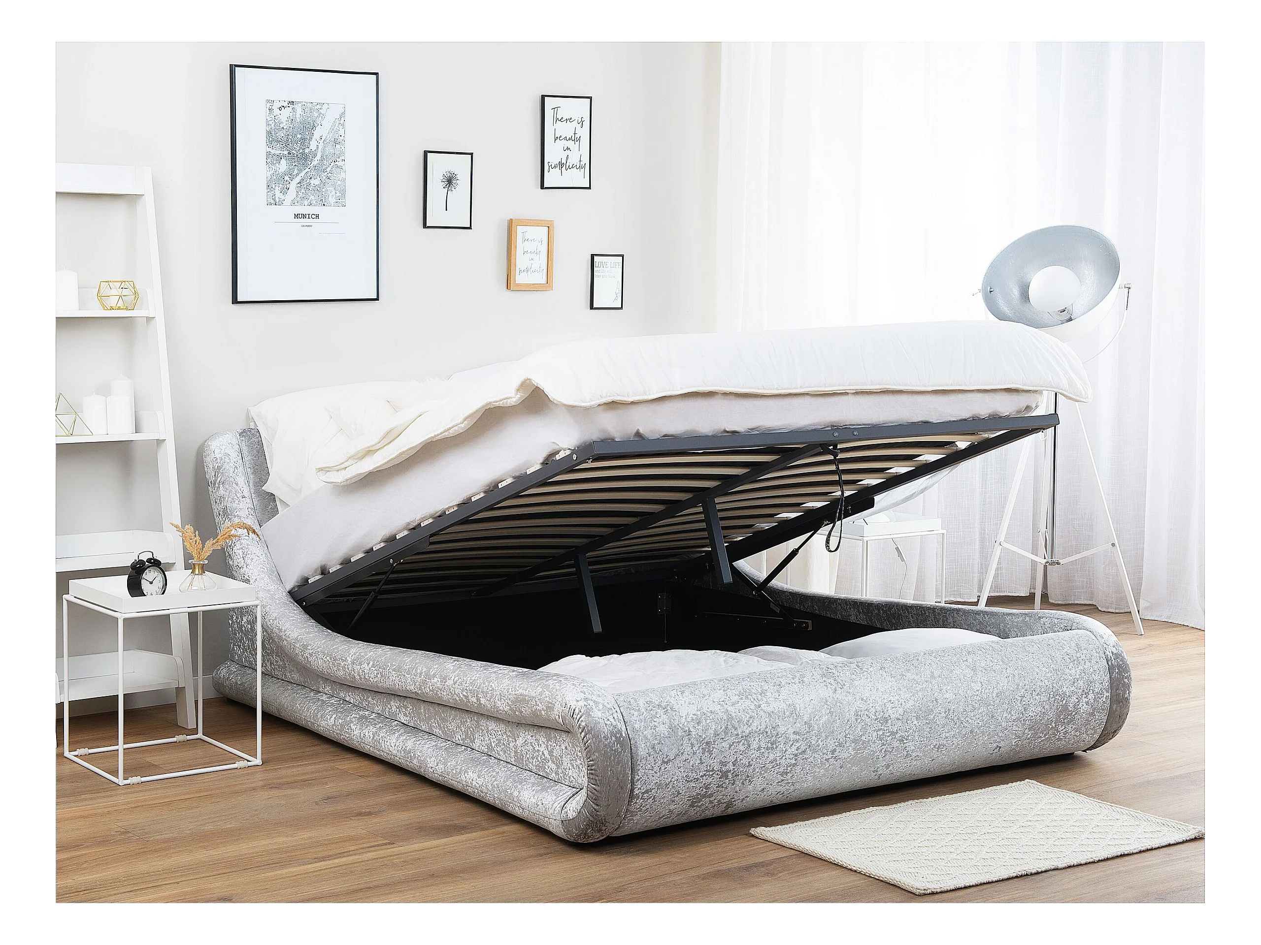 Bett Samtstoff silber mit Bettkasten hochklappbar 160 x 200 cm AVIGNON