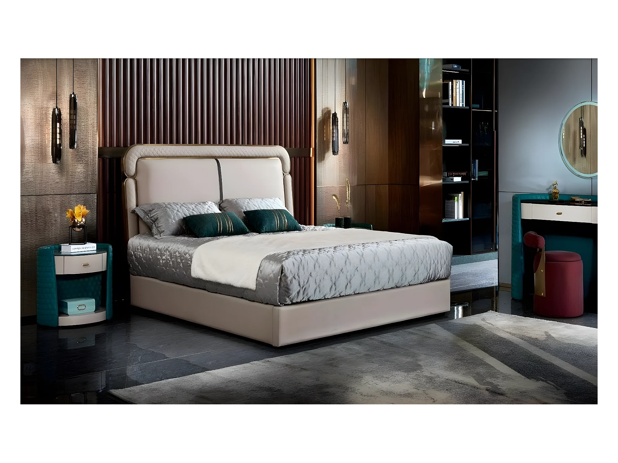 Bett Schlafzimmer Beige Modern Design Möbel Holz Luxus Neu