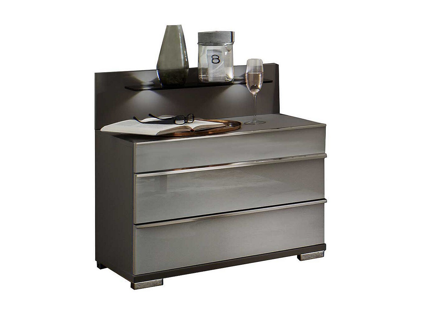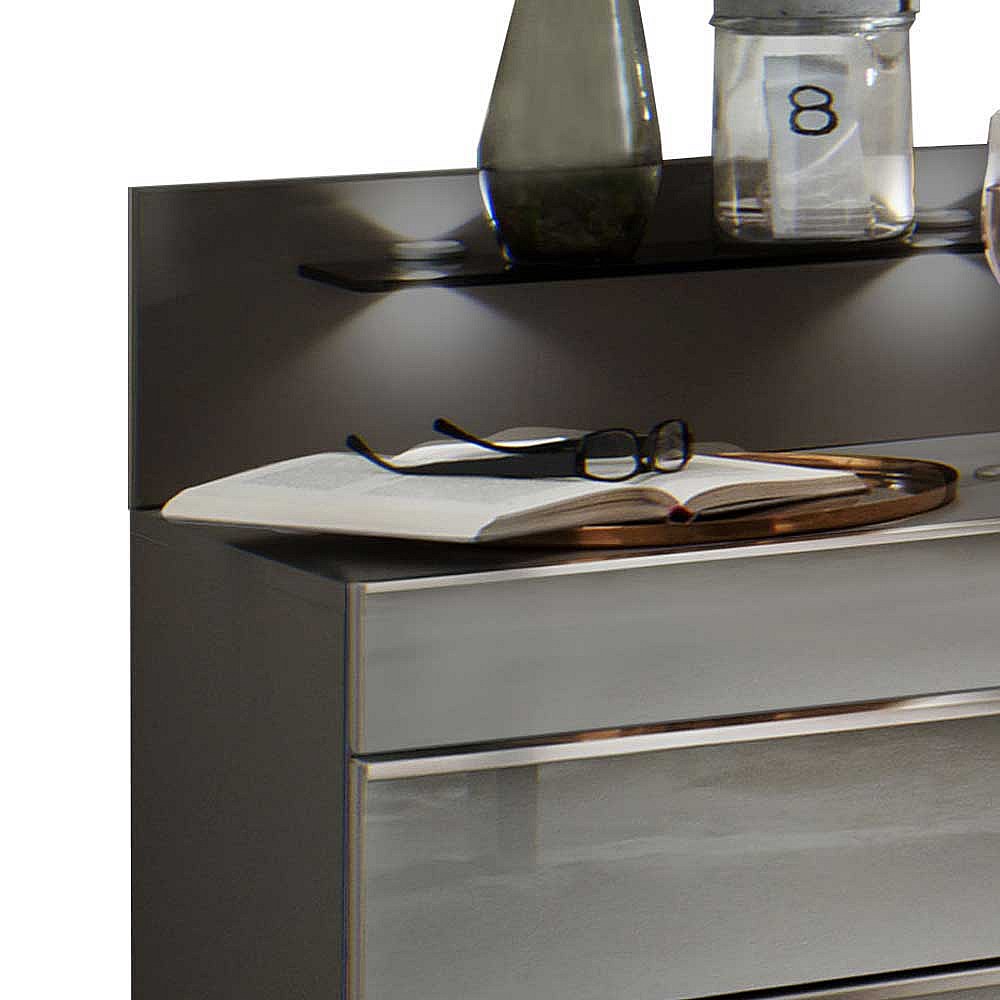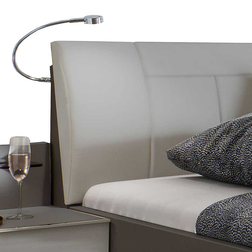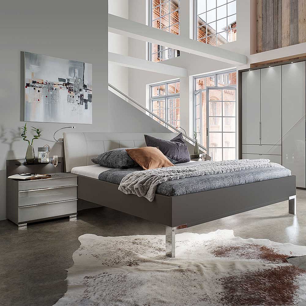 Bett und Nachtkommoden in Hellgrau Braun LED Beleuchtung (dreiteilig)