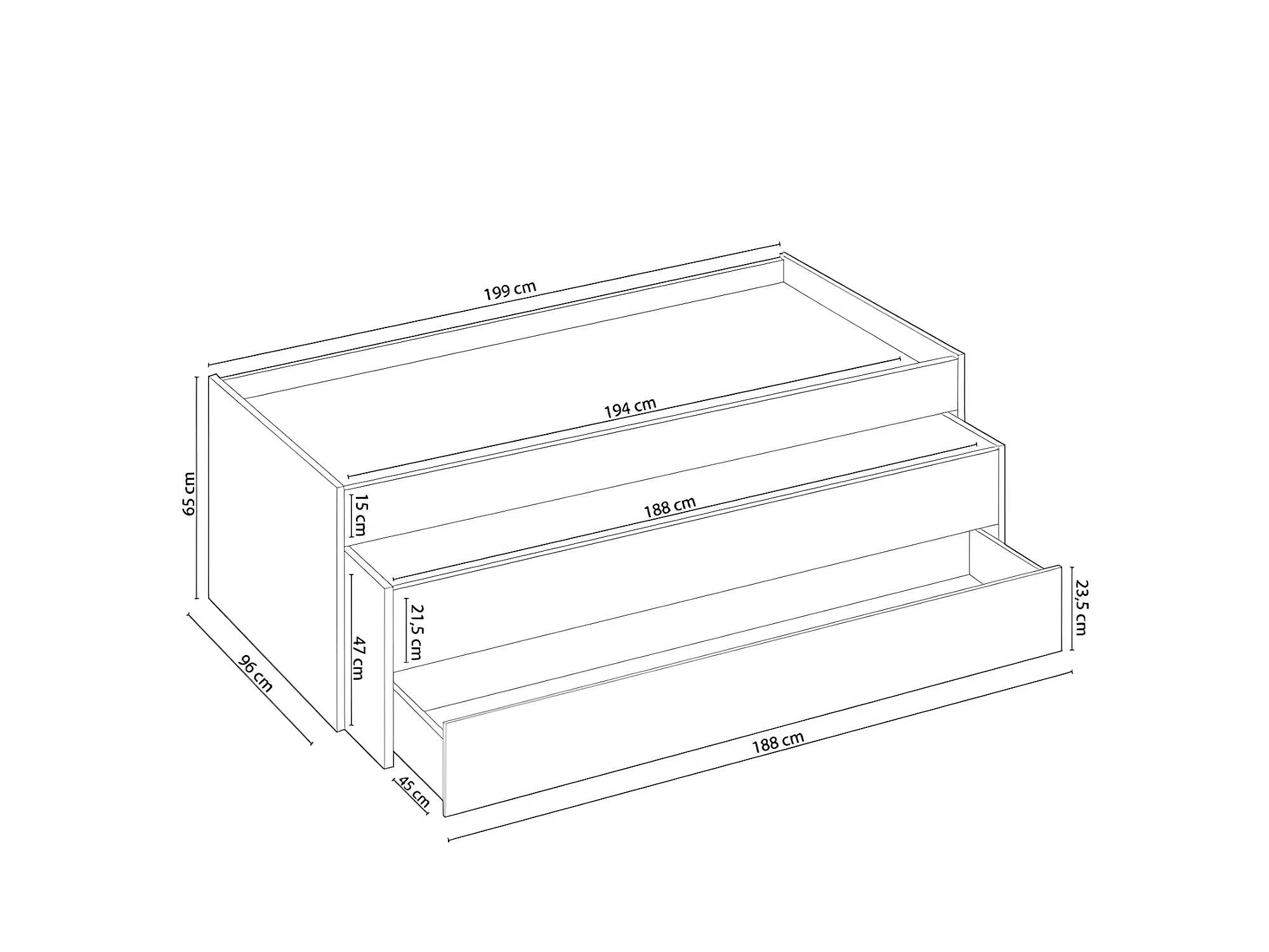Bett und Regal ohne Lattenrost und Matratzen rosa 65x199x96cm