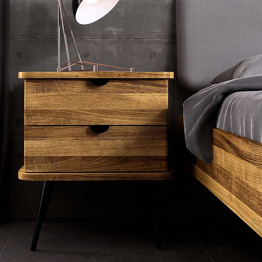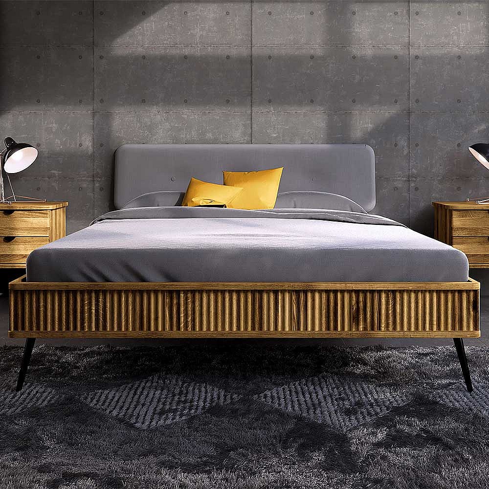 Bett Wildeiche mit Polsterkopfteil in modernem Design 41 cm Einstiegshöhe