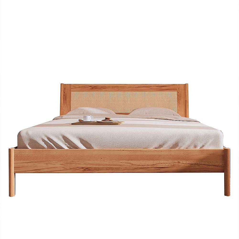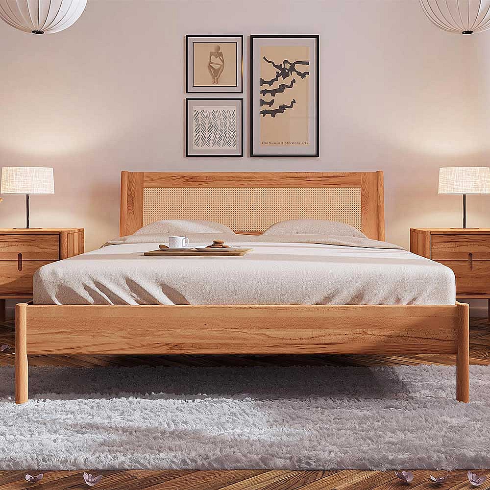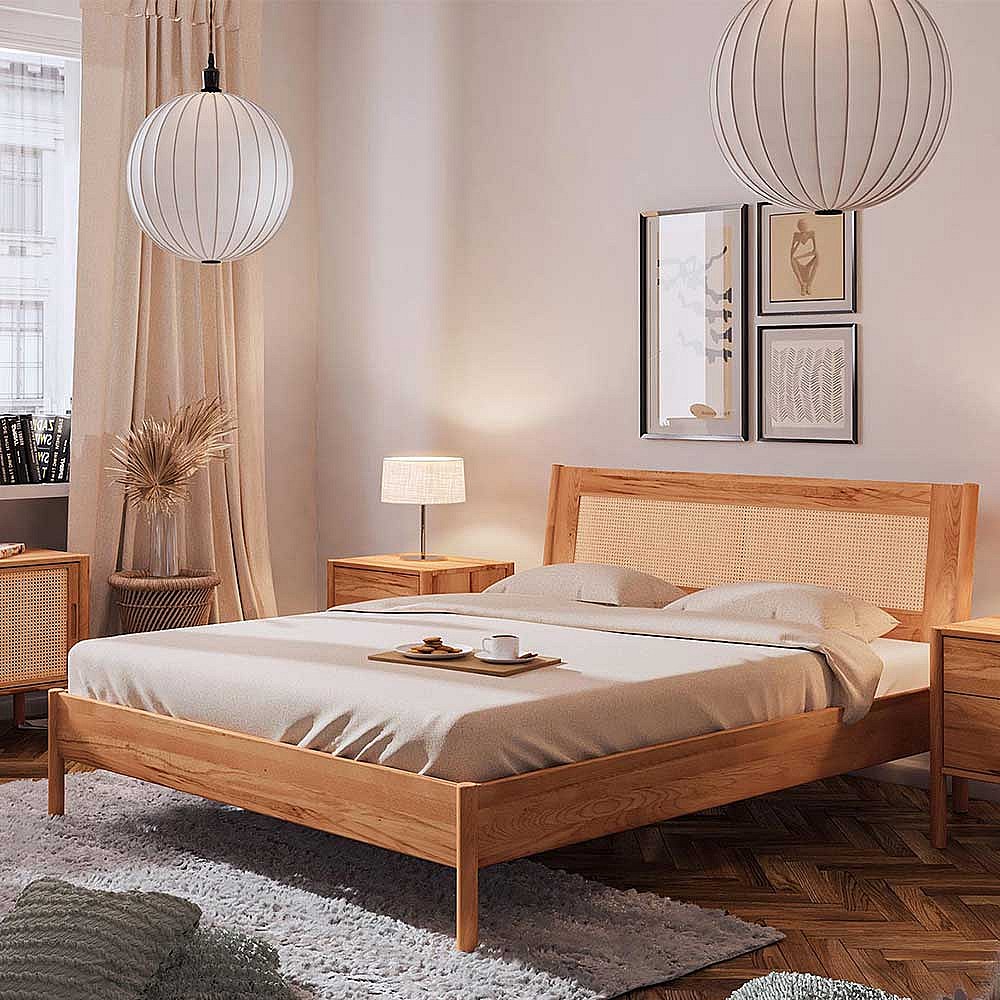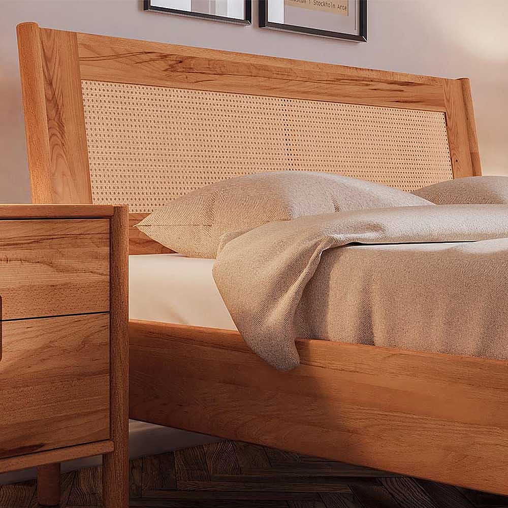 Bett Wildeiche und Rattan 38 cm Einstiegshöhe auch mit Kommoden