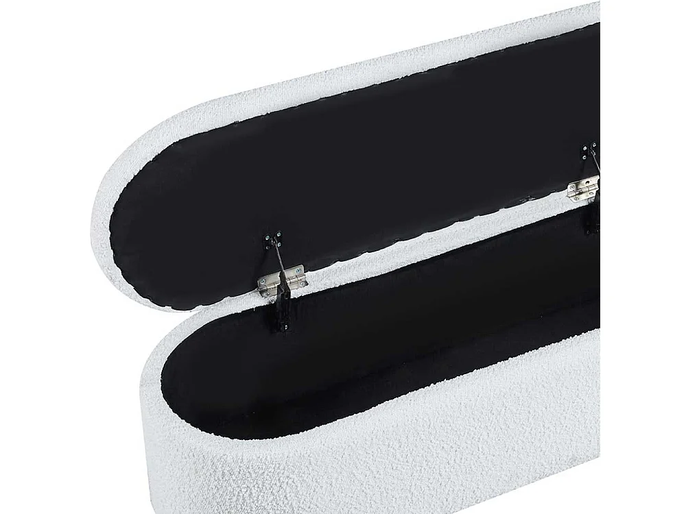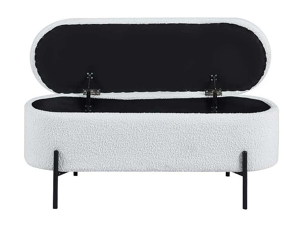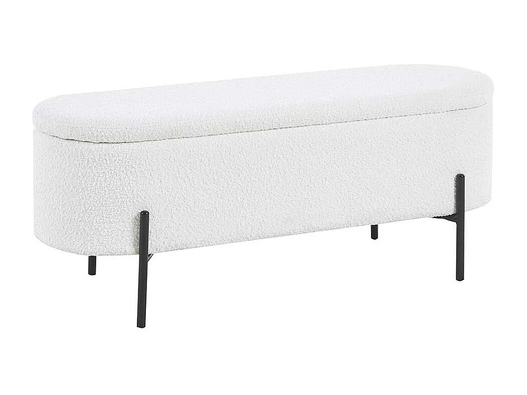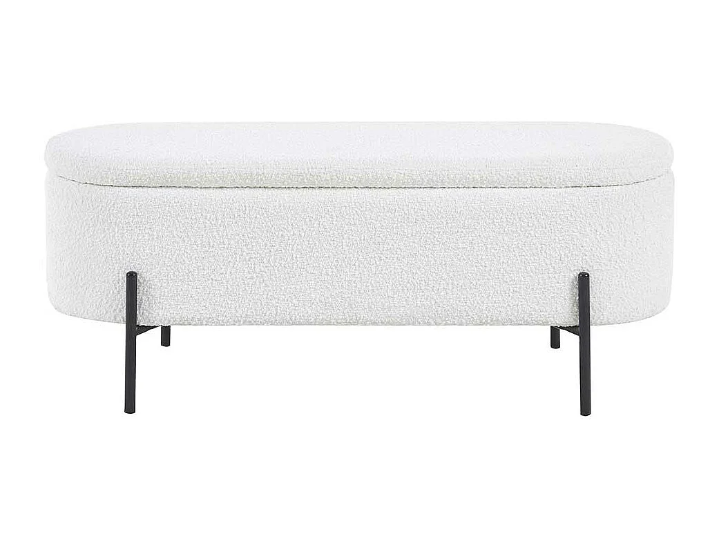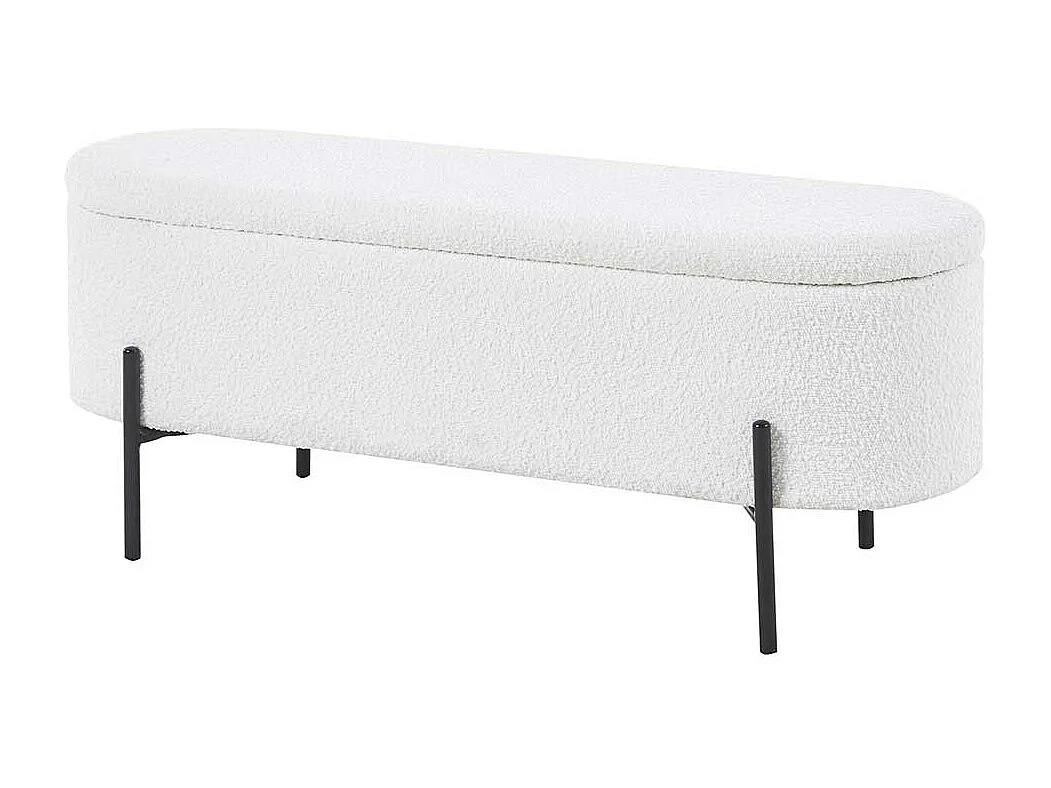 Bettbank mit Truhe weiss aus Boucle Stoff Vierfußgestell aus Metall