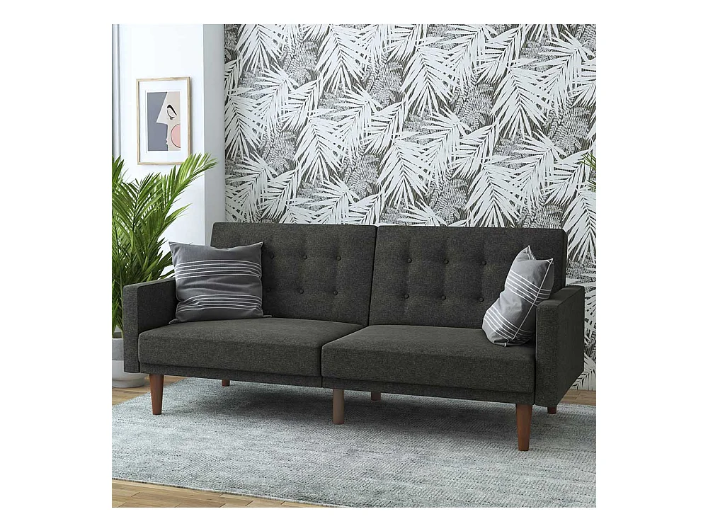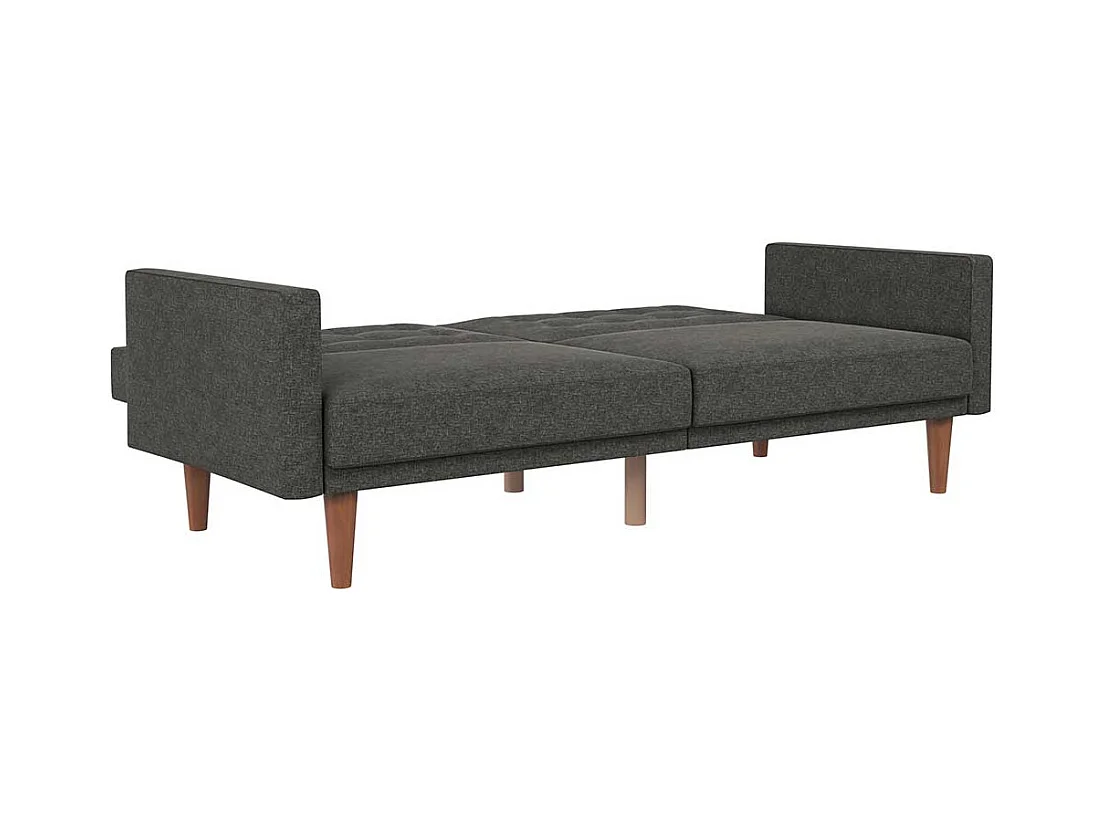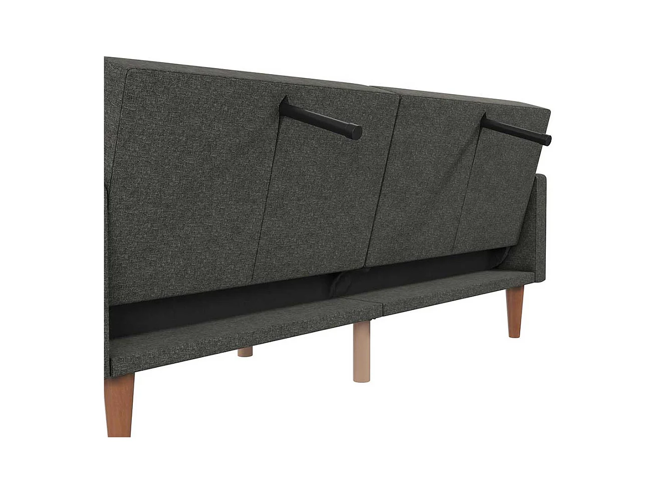Bettcouch Retro Stil in Grau Stoff Rücken Klappmechanik