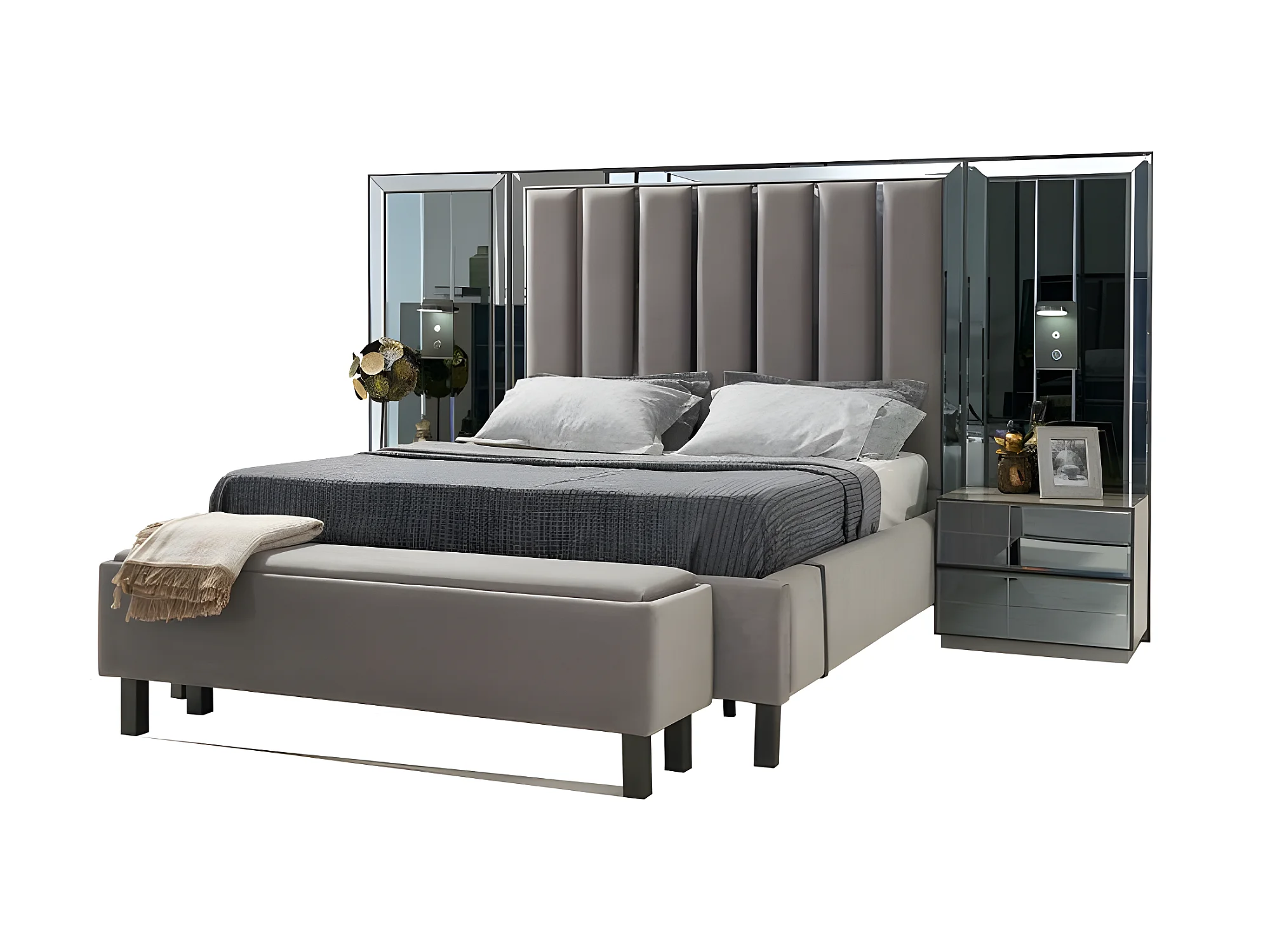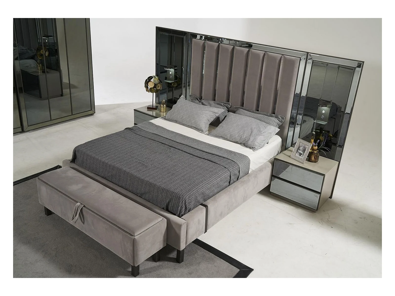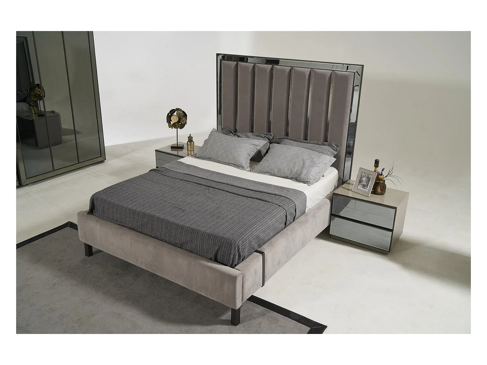 Betten Design Bett Polster Schlafzimmer Hotel Design Doppelbett Metall Taupe Neu