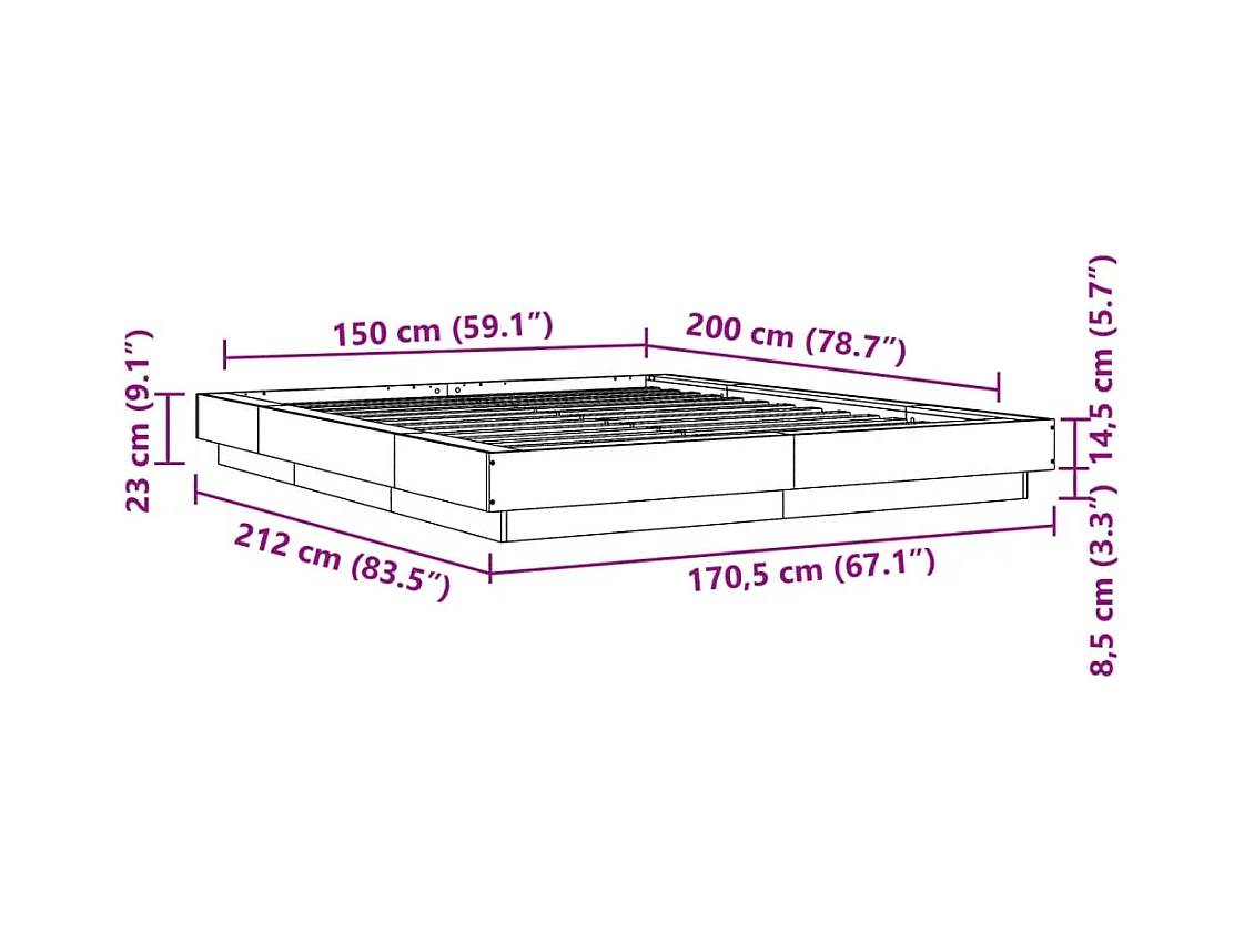 Bettgestell Betongrau 150x200 cm Holzwerkstoff