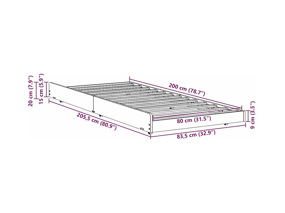 Bettgestell Braun 80 x 200 cm Massivholz Kiefer