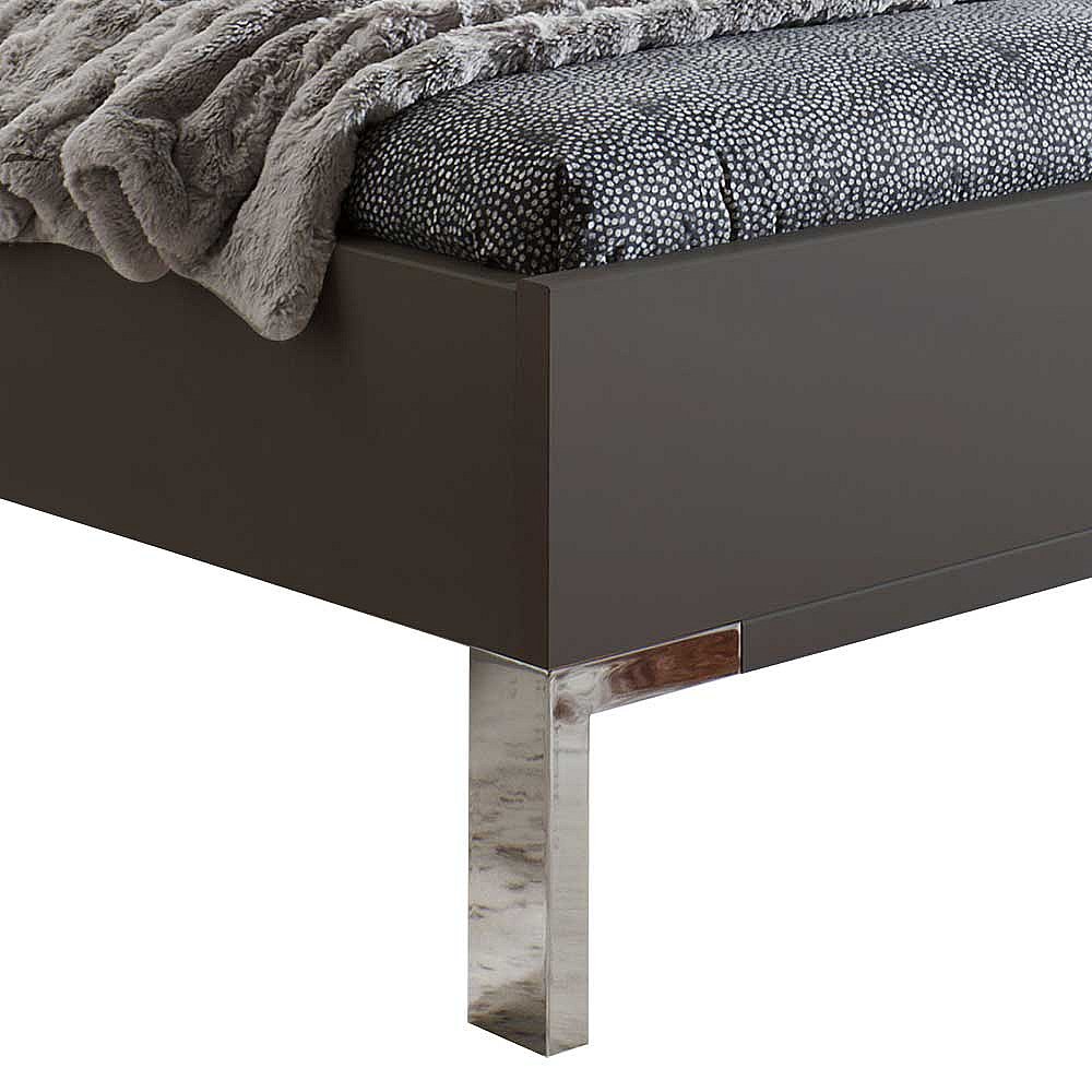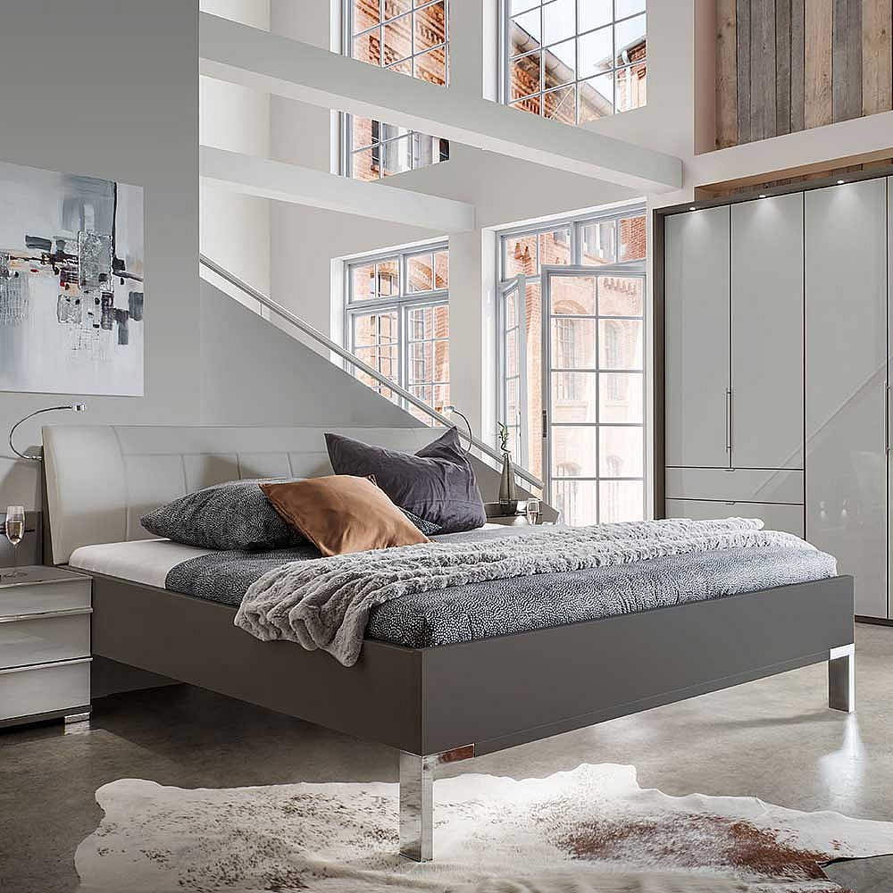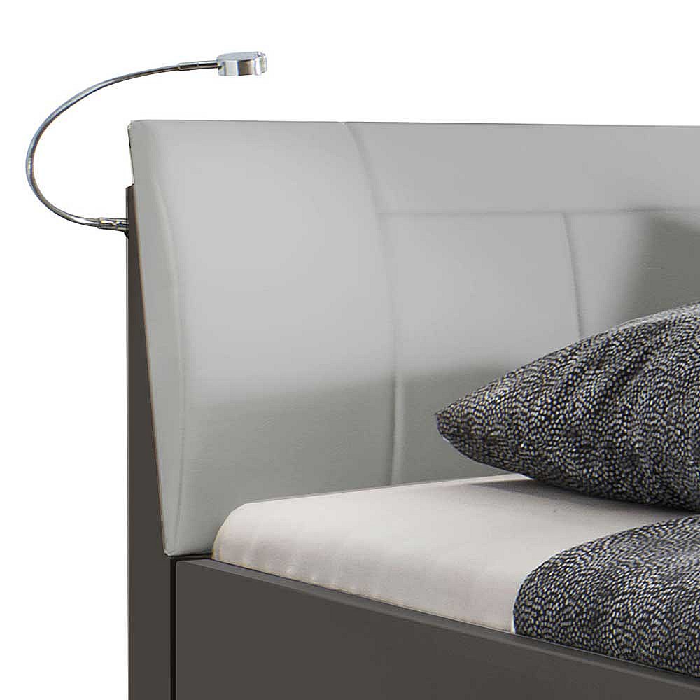 Bettgestell in Hellgrau und Braun LED Beleuchtung