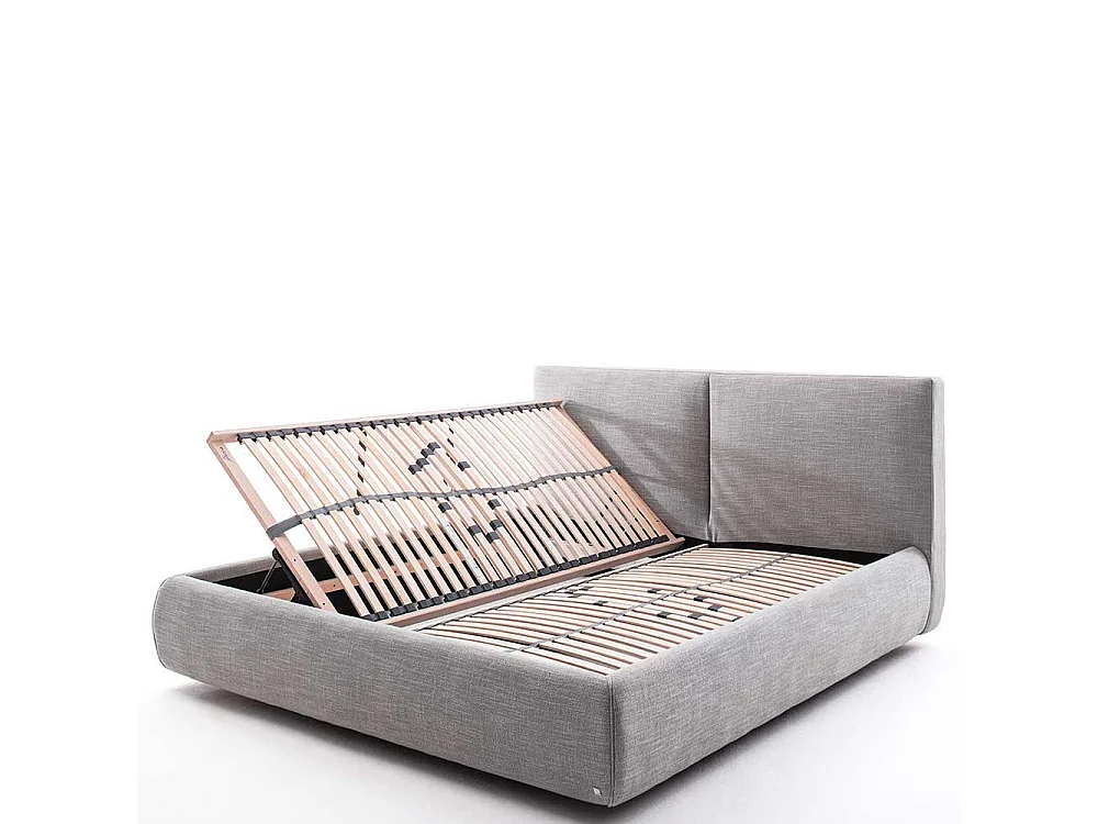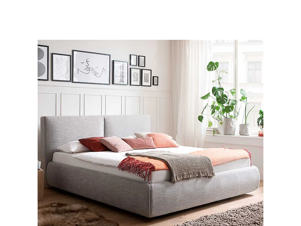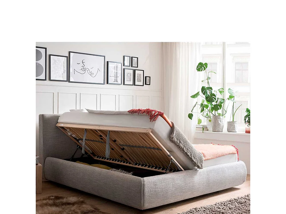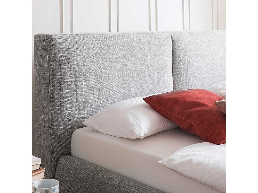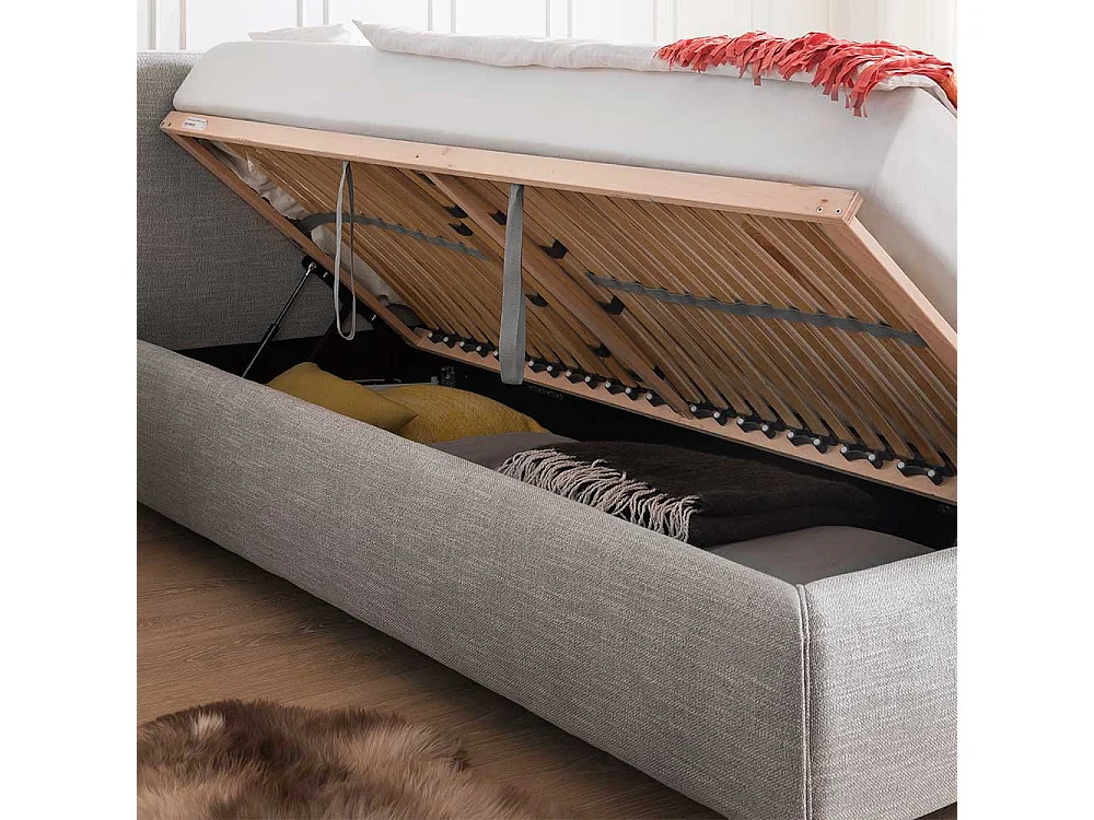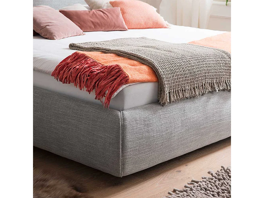 Bettgestell in Hellgrau Webstoff Bettkasten