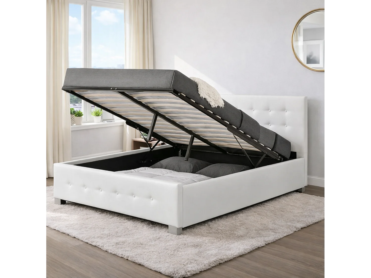 Bettgestell mit Bettkasten 160 x 200 cm weiß NEWINGTON