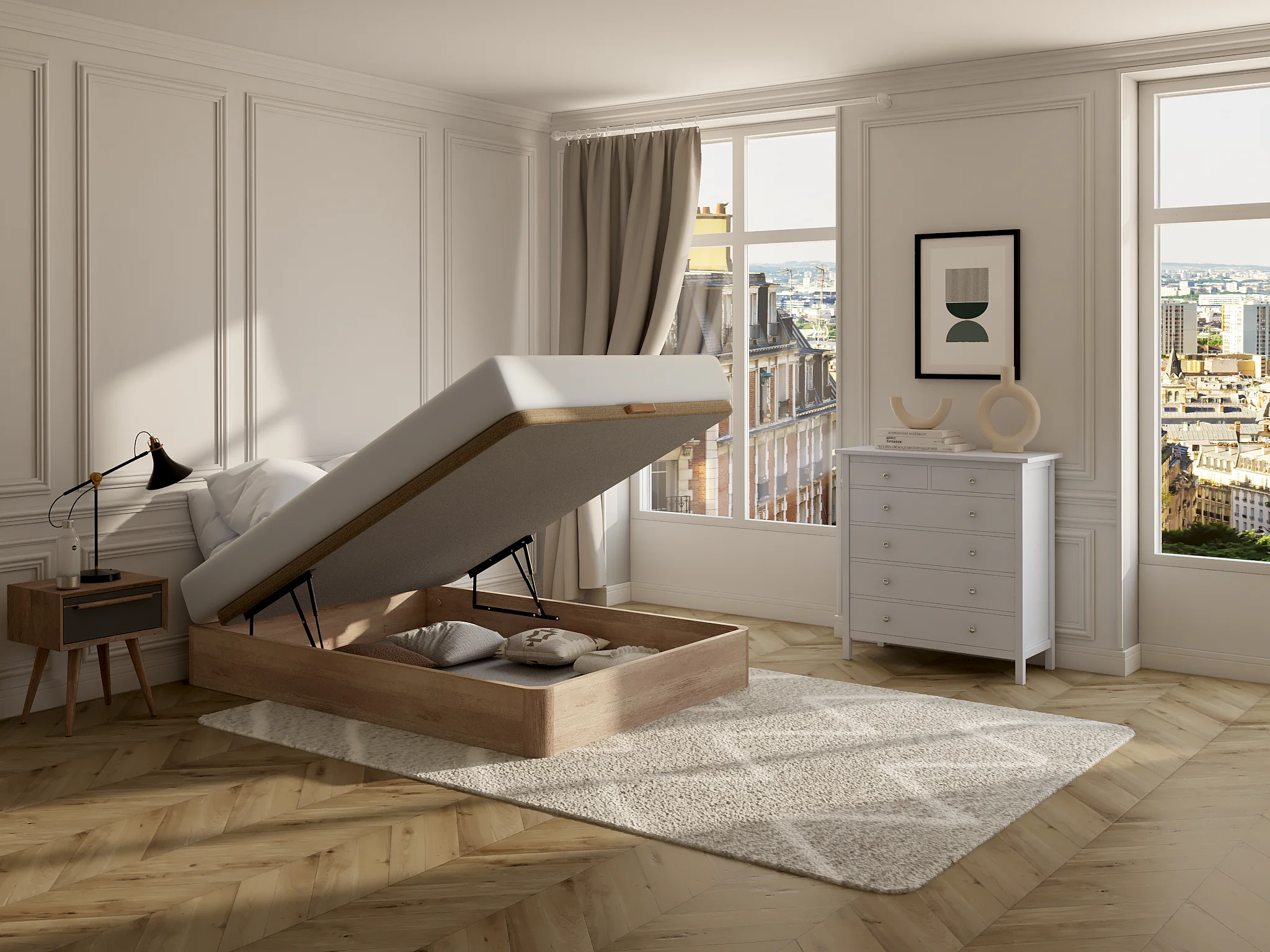 Bettgestell mit Bettkasten mit Schublade - 140 x 200 cm - Holzfarben hell - HESTIA von YSMÉE