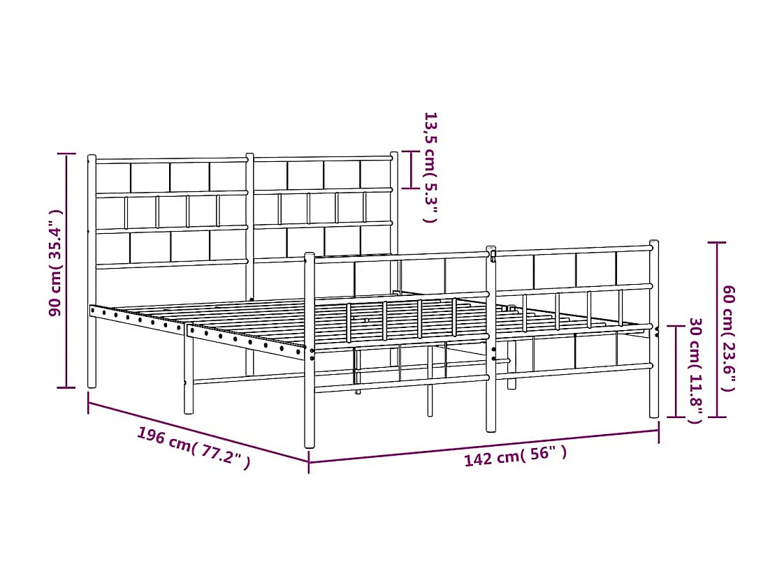 Bettgestell mit Kopf- und Fußteil Metall Schwarz 135x190 cm