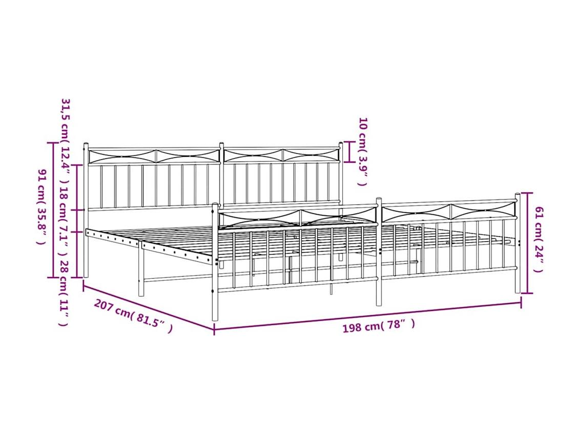 Bettgestell mit Kopf- und Fußteil Metall Schwarz 193x203 cm