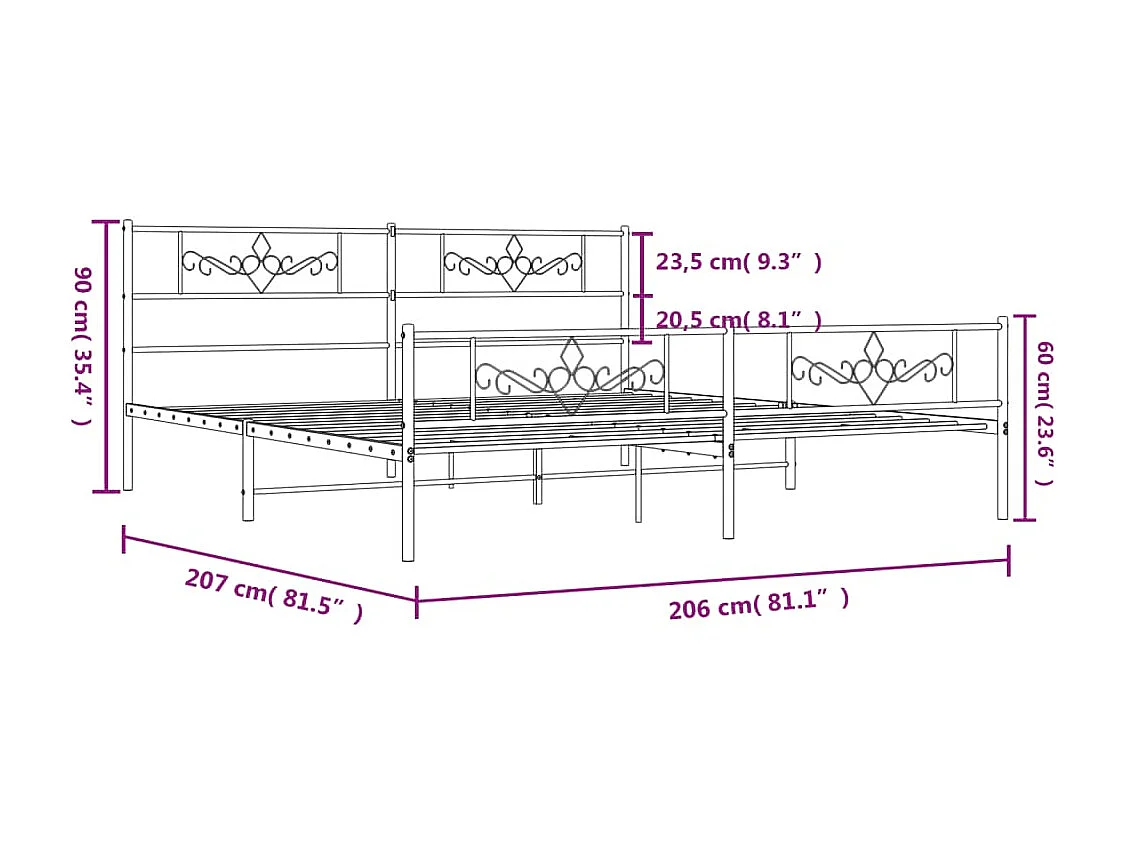 Bettgestell mit Kopf- und Fußteil Metall Schwarz 200x200 cm