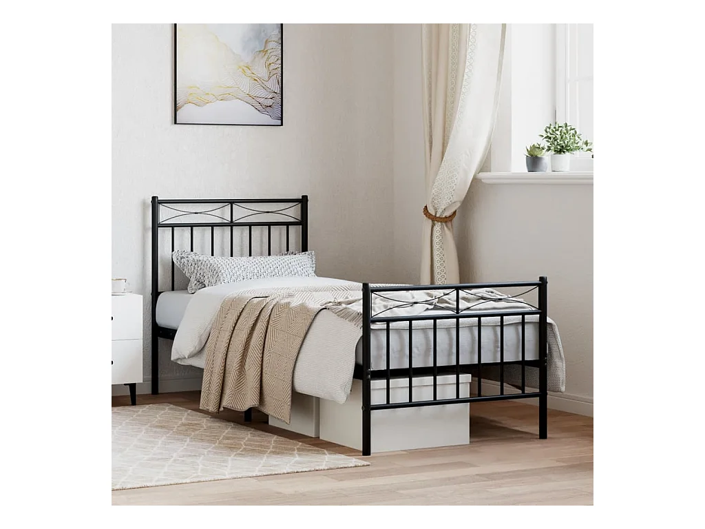 Bettgestell mit Kopf- und Fußteil Metall Schwarz 80x200 cm