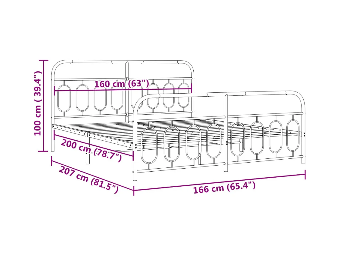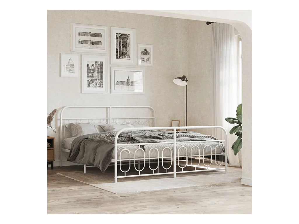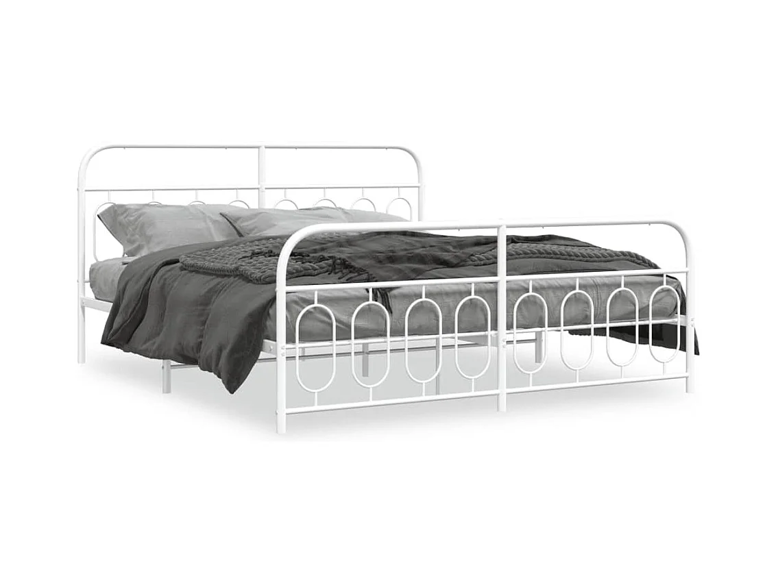 Bettgestell mit Kopf- und Fußteil Metall Weiß 160x200 cm