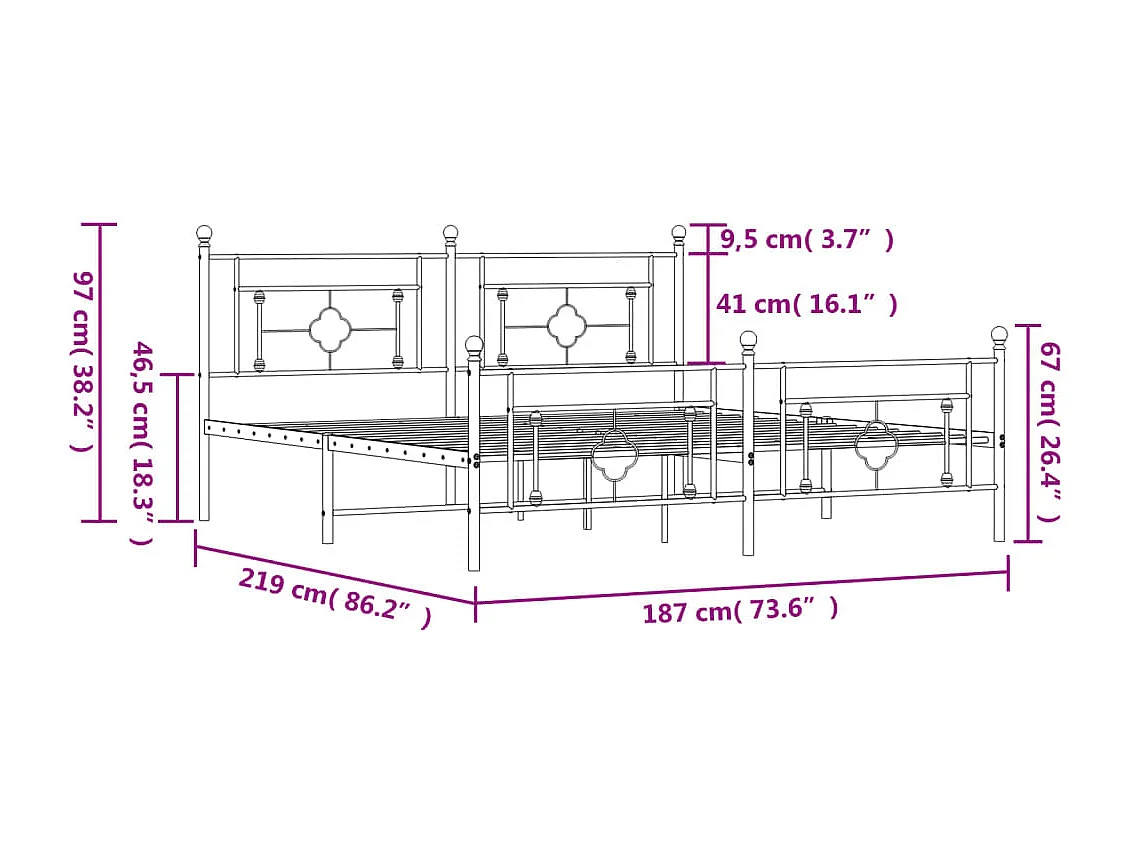 Bettgestell mit Kopf- und Fußteil Metall Weiß 183x213 cm